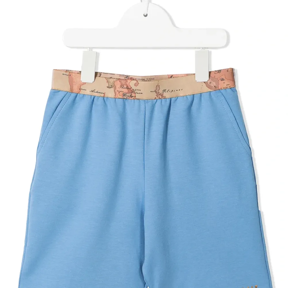 Tecido com stretch, принт с надписью спереди, графичный принт, эластичный пояс и два прорезных кармана по бокам.