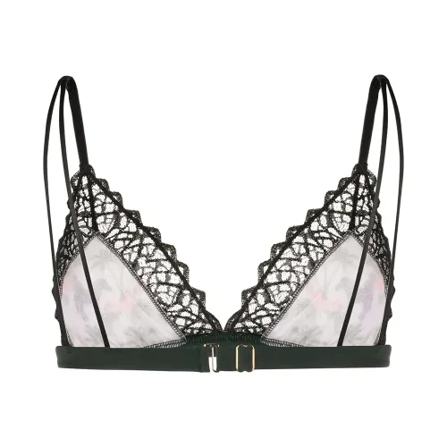 Бюстгальтер с мягкими треугольными чашками и принтом от Dolci Follie. Деталь из кружева, V-образная горловина, регулируемые лямки и застежка на крючок. Цвет: черный. Примерка белья разрешена исключительно поверх собственного..