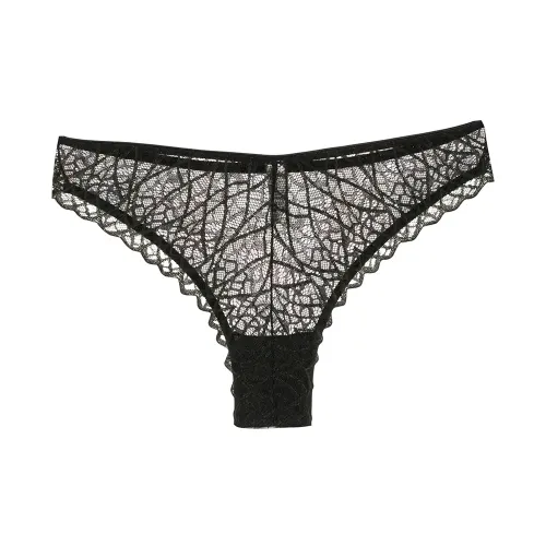 Трусы-бразилиана с принтом от Dolci Follie. Деталь из кружева, эластичный пояс и сплошной узор. Цвет: черный. Примерка белья разрешена исключительно поверх собственного..