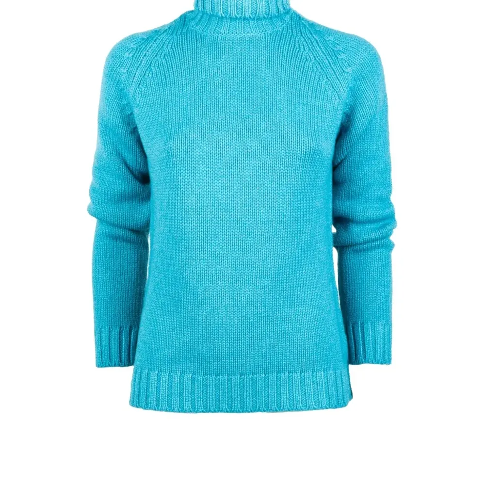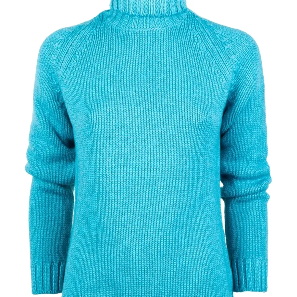 синий свитер с ребристой отделкой, воротником-гольф и длинными рукавами, трикотажной вязки