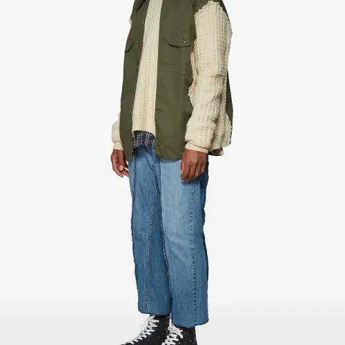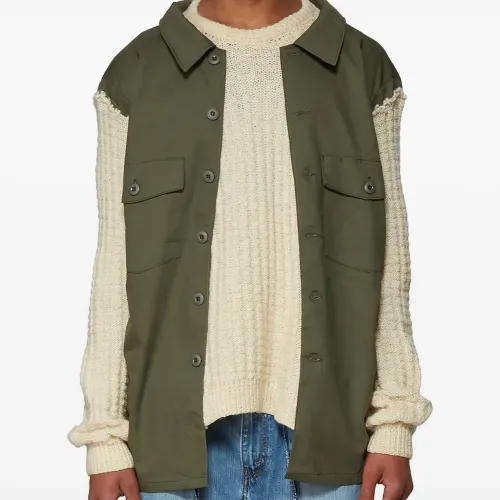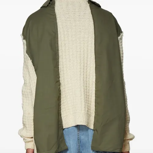 оливково-зелёный фактурная крупная вязка многослойный дизайн отложной воротник нагрудные накладные карманы декоративная планка на пуговицах длинные рукава