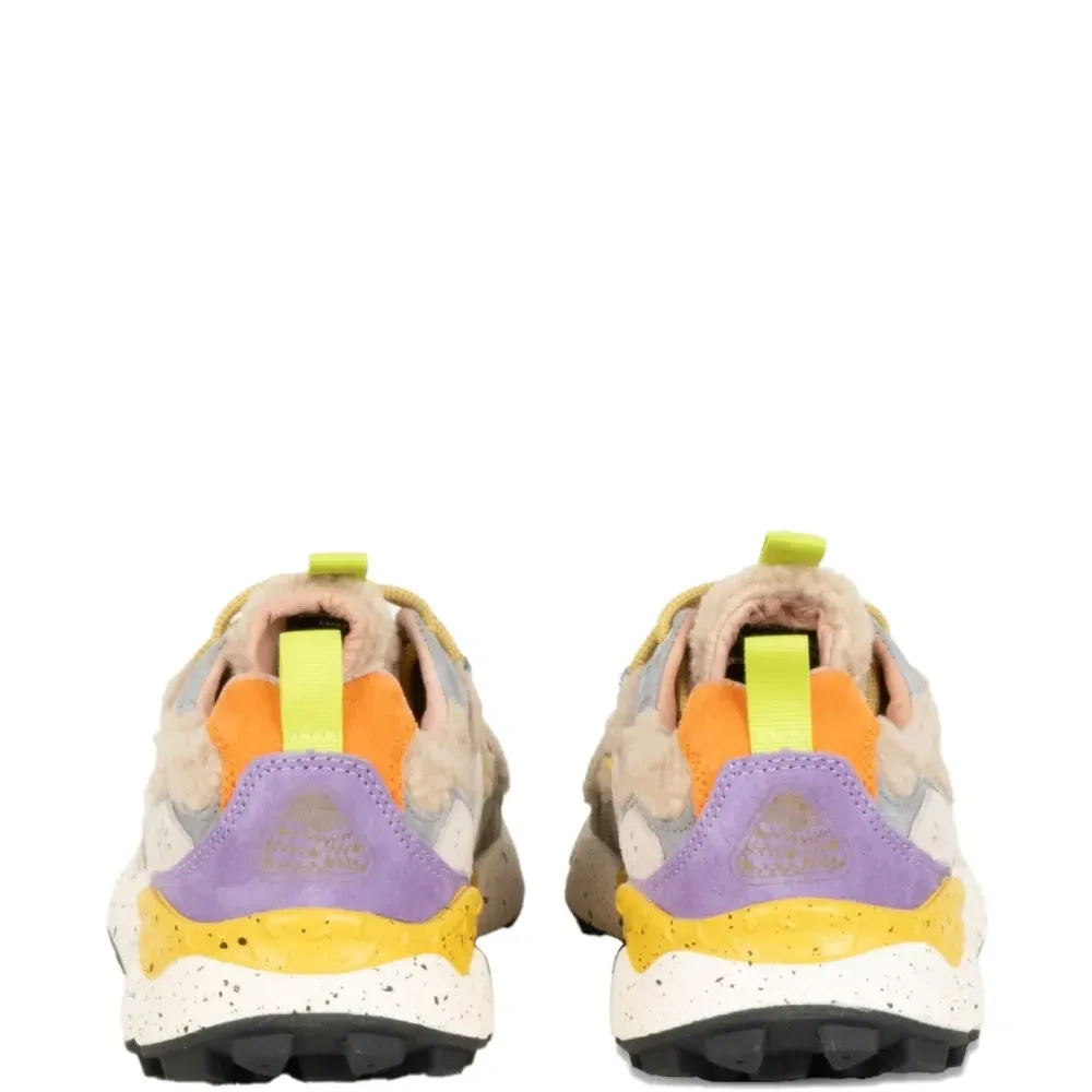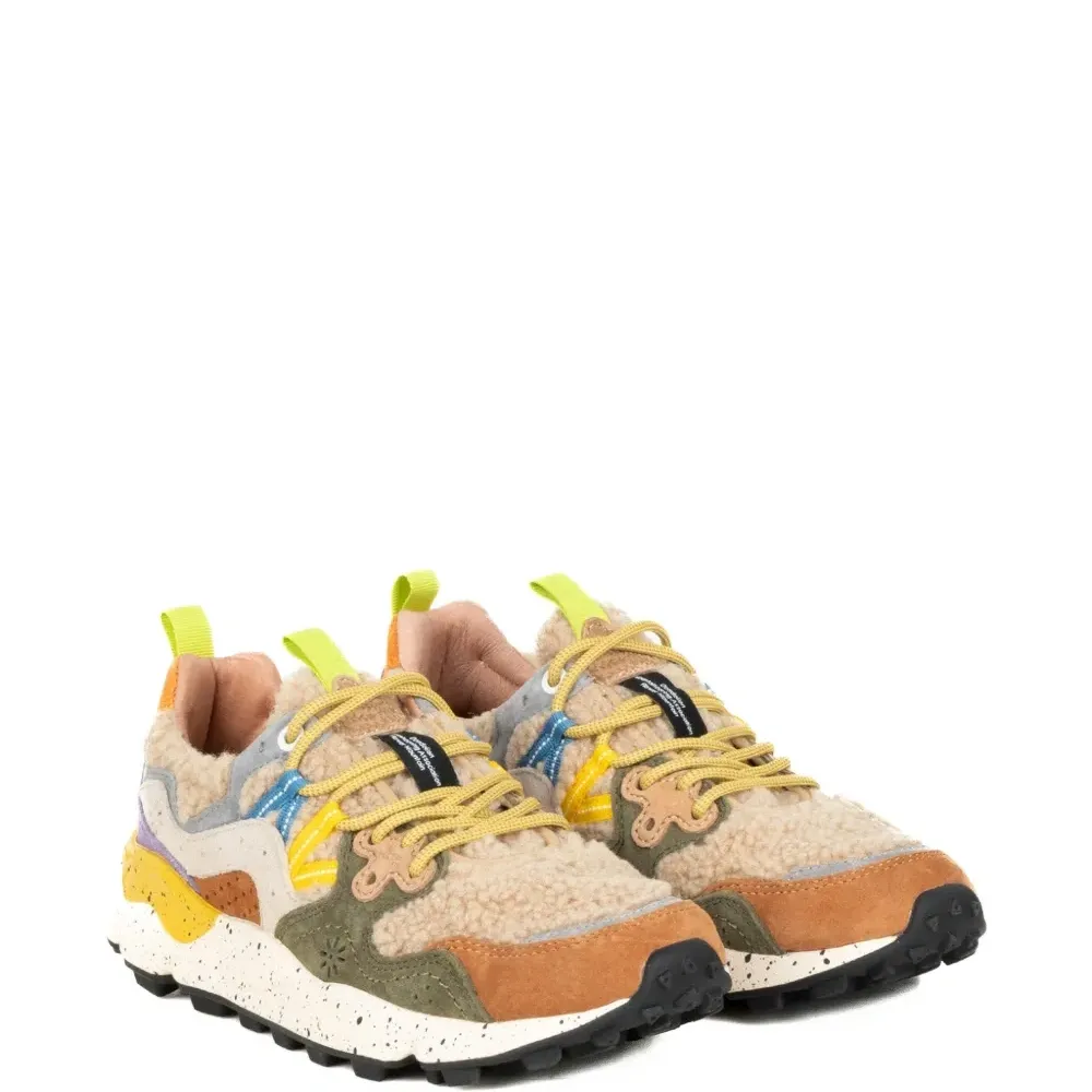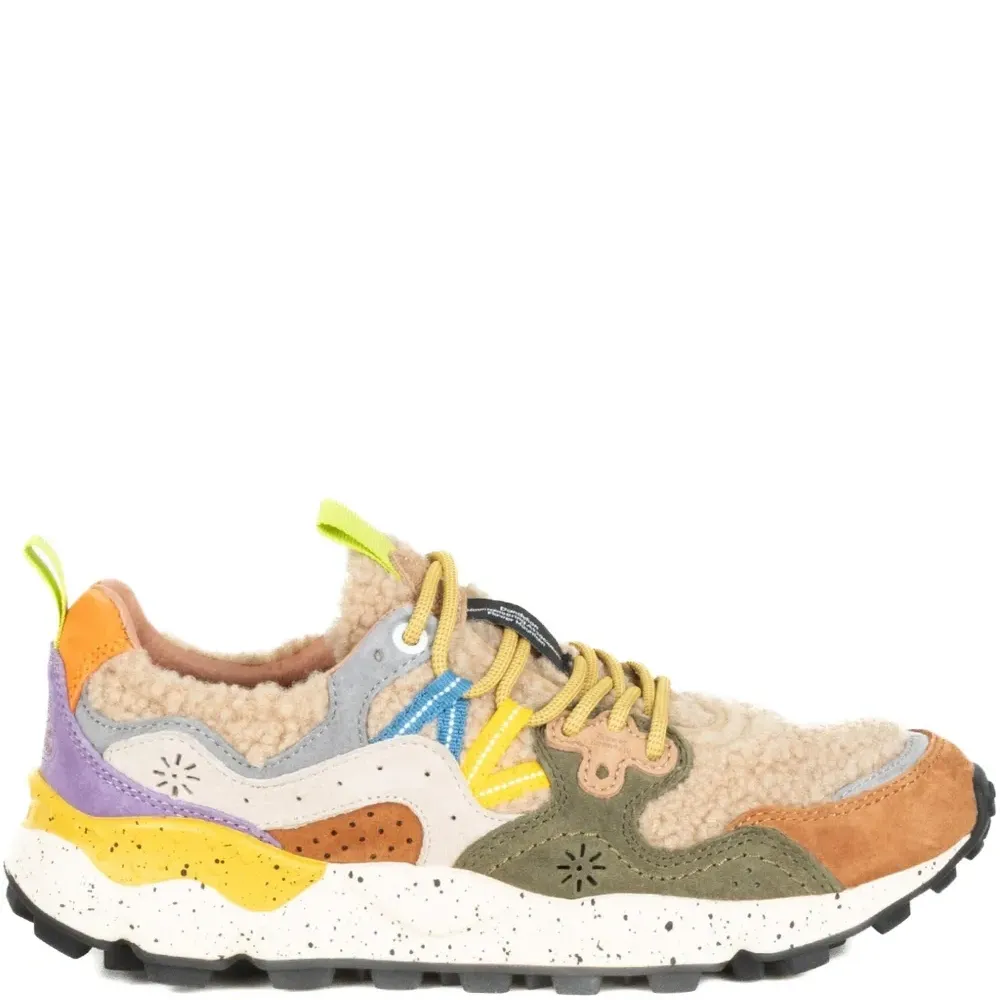 бежевые и разноцветные, с цветочным декором, шнуровкой, пятнистой подошвой и петлей на пятке