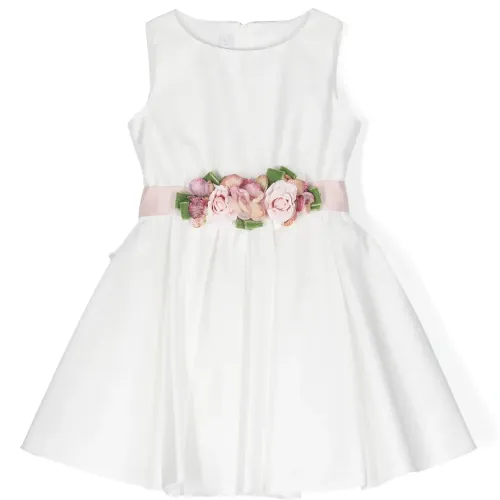 Атласное платье с цветочной аппликацией