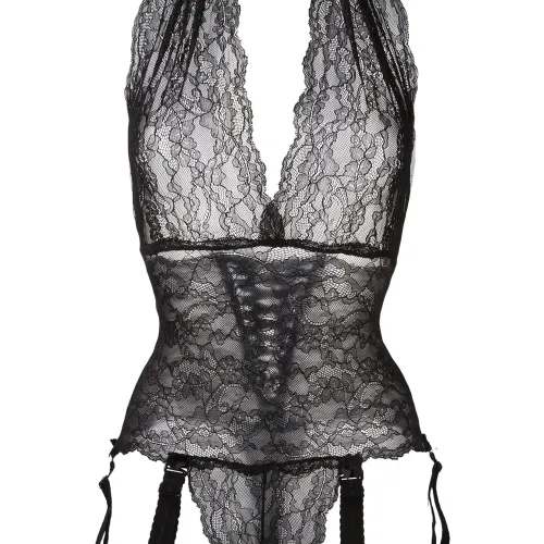 Черное кружевное боди от Folies By Renaud.Примерка белья разрешена исключительно поверх собственного.