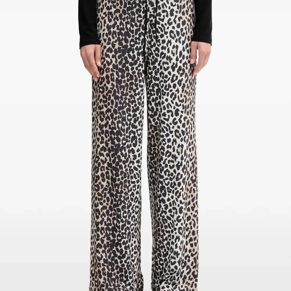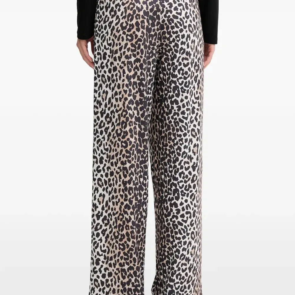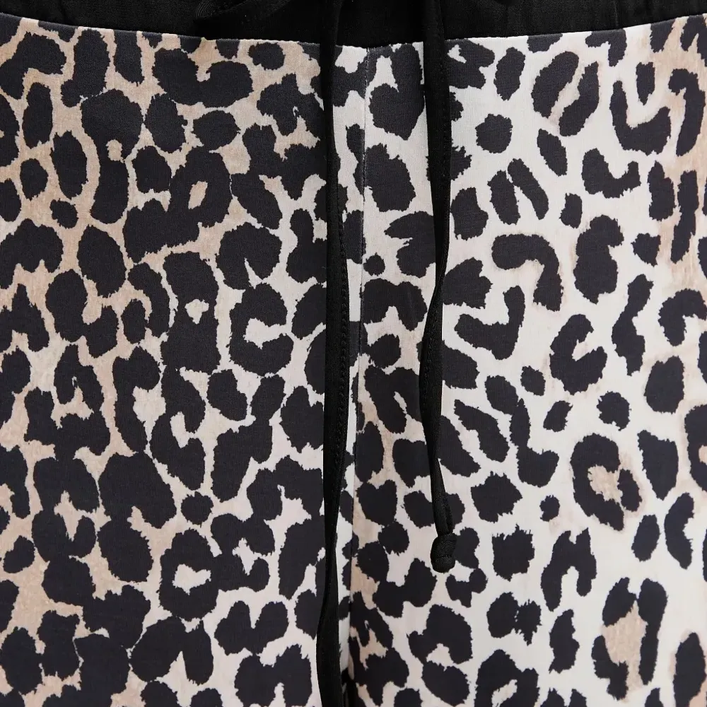 бежевые и черные брюки с анималистичным принтом, прямым кроем, шнурком и эластичным поясом
