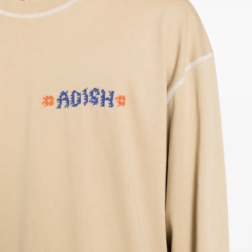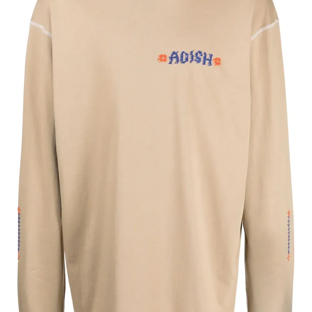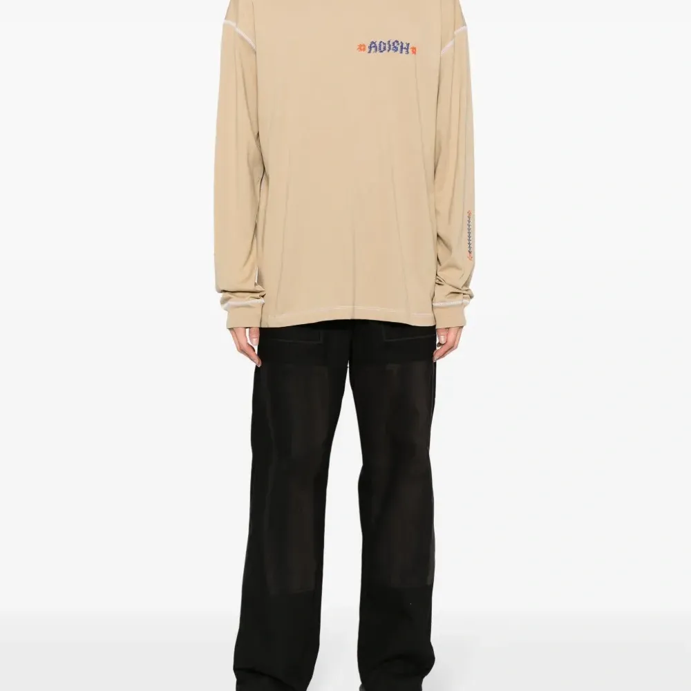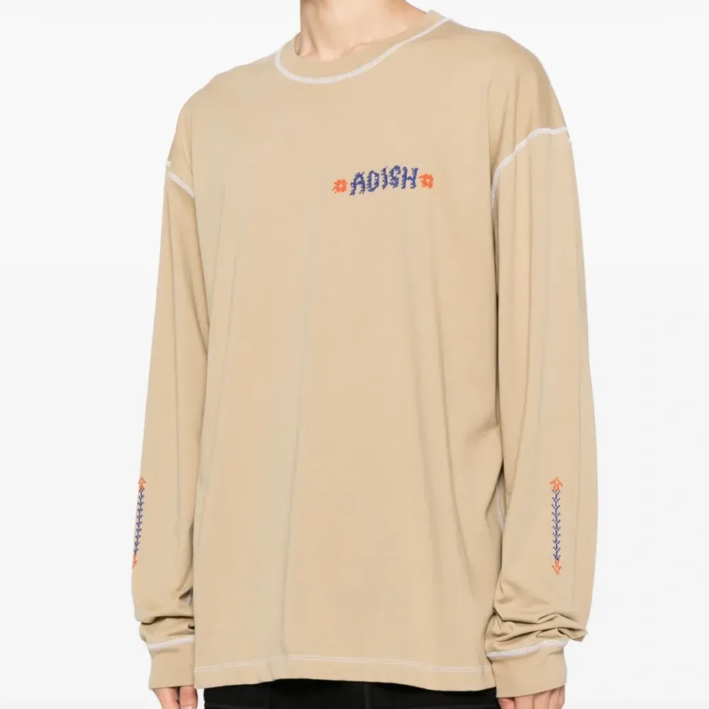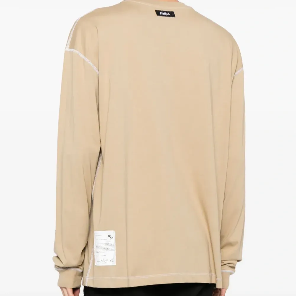 Песочно-бежевый, белый, хлопок, контрастная строчка, вышитый логотип на груди, нашивка, круглый вырез, приспущенные плечи, длинные рукава и прямой подол. . Узнать больше о том, какие товары получают отметку «Ответственный выбор», можно из материала «Как мы оцениваем экологичность и этичность».
