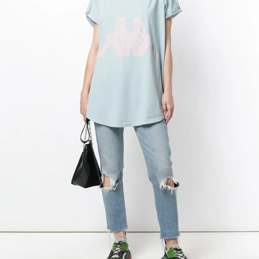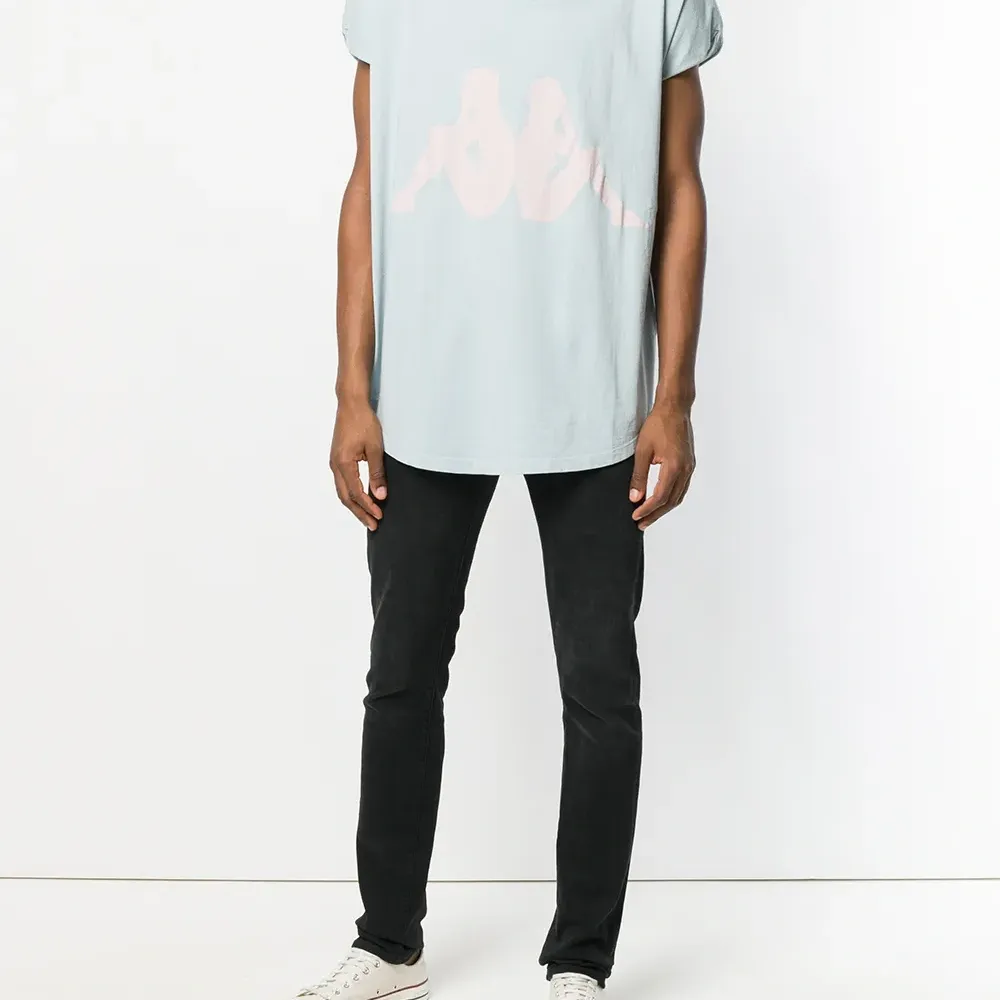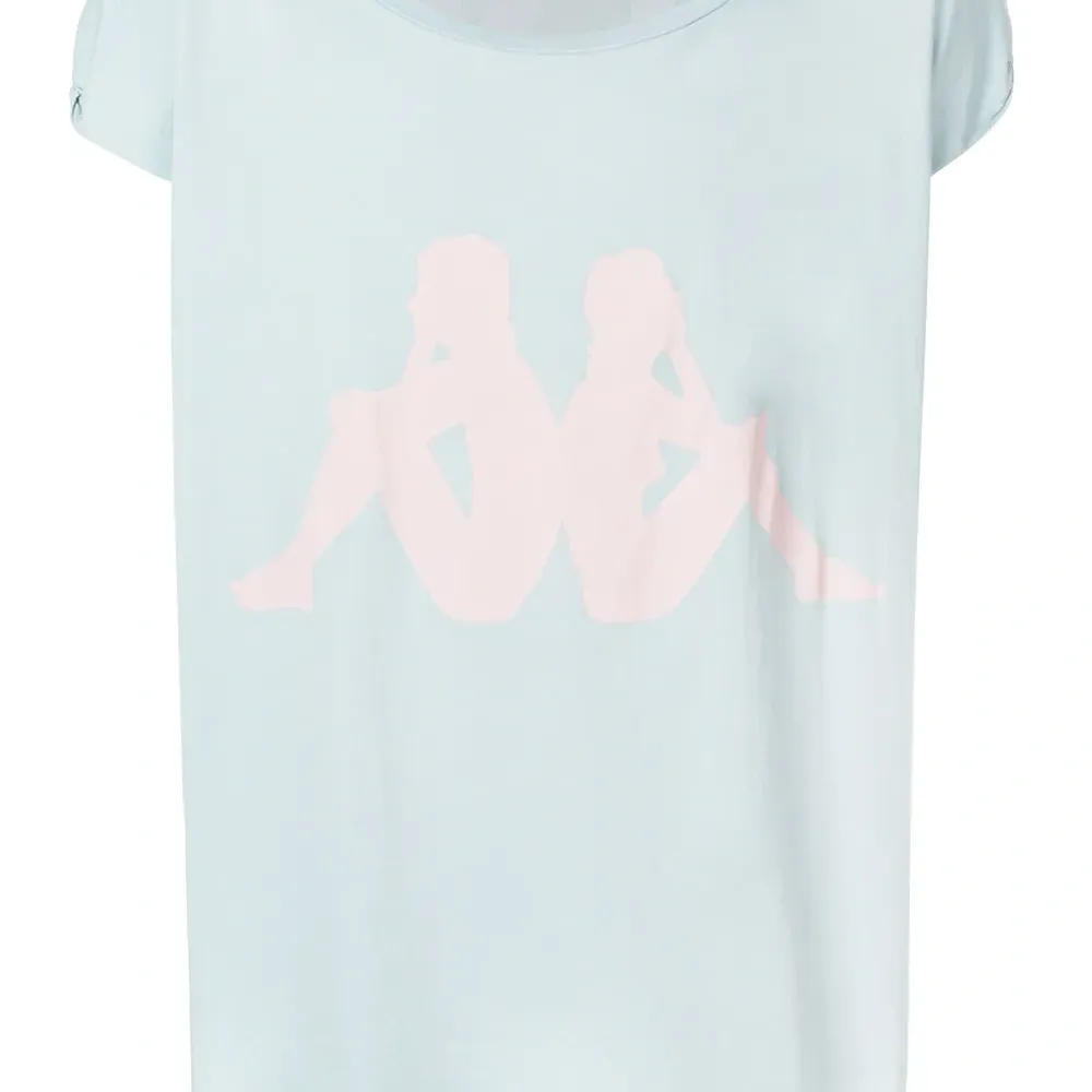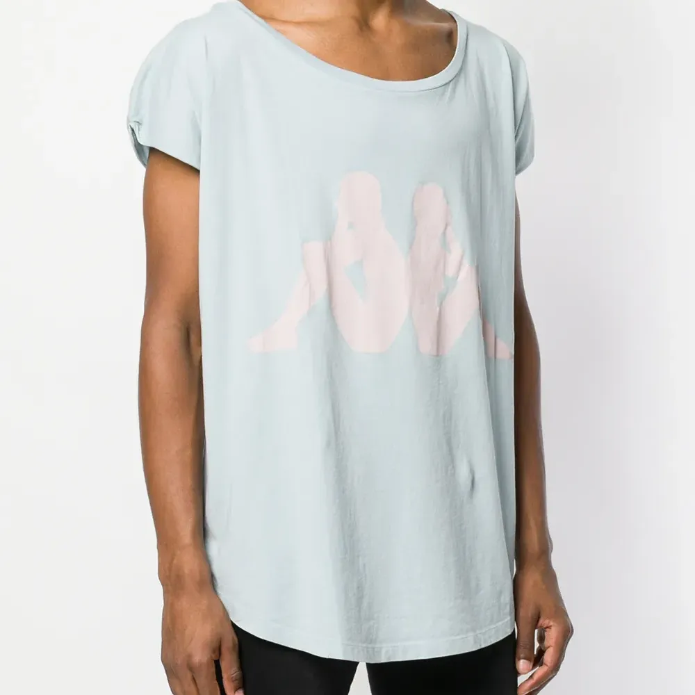 Голубая хлопковая футболка 'Kappa' с логотипом от Faith Connexion. Круглый вырез, короткие рукава, закругленный подол.
