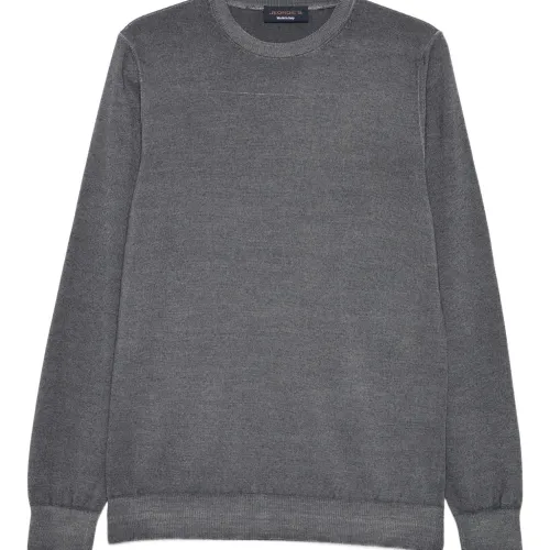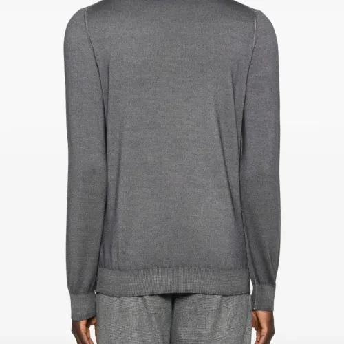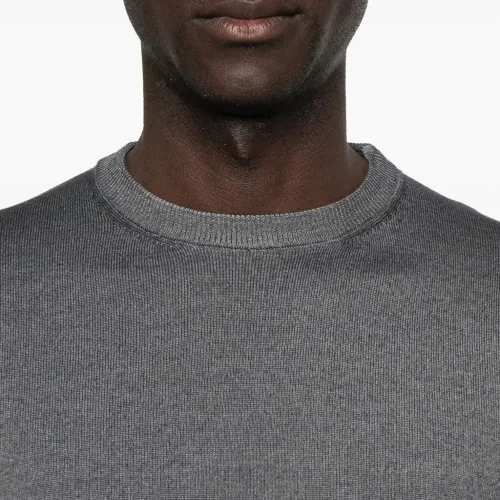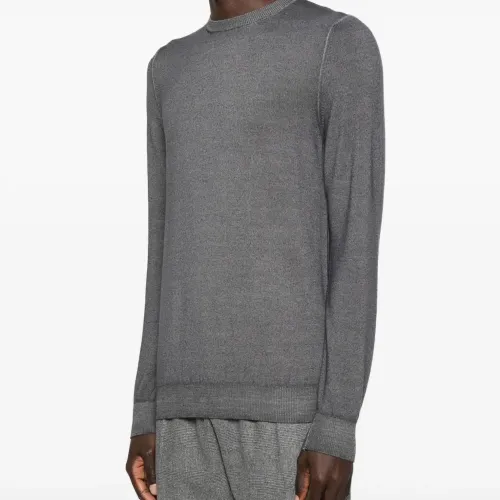 средне-серый круглый вырез длинные рукава рубчатый низ и манжеты
