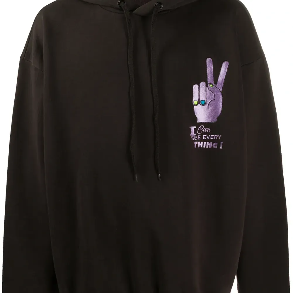 Классический капюшон, застежка на шнурке, графичный принт и длинные рукава.