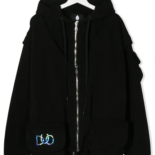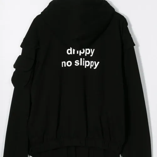 Бомбер Drippy от Duo. Капюшон, затягивающийся на шнурок, застежка на молнии спереди, длинные рукава, эластичные манжеты, два передних кармана и эластичный подол. Цвет: черный.