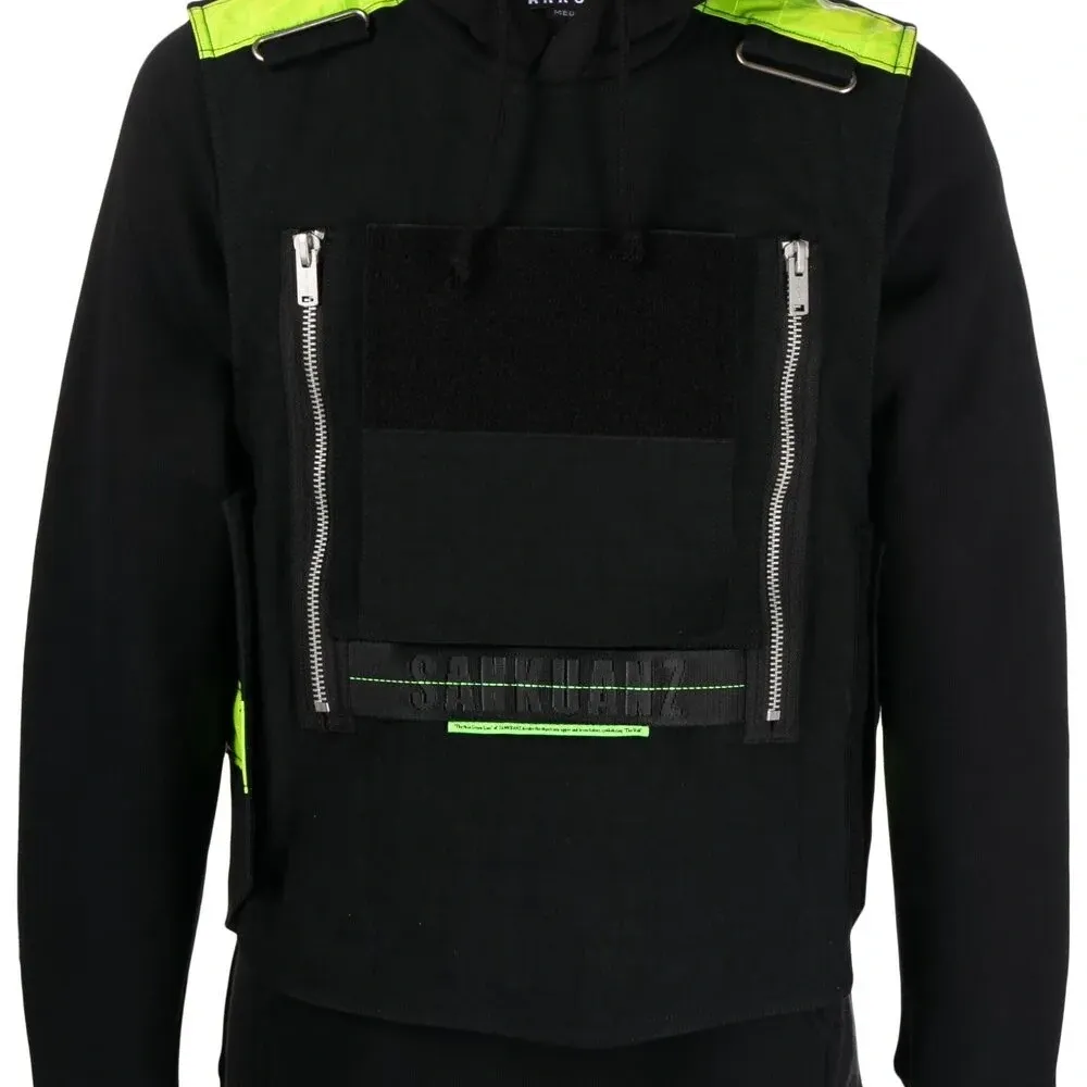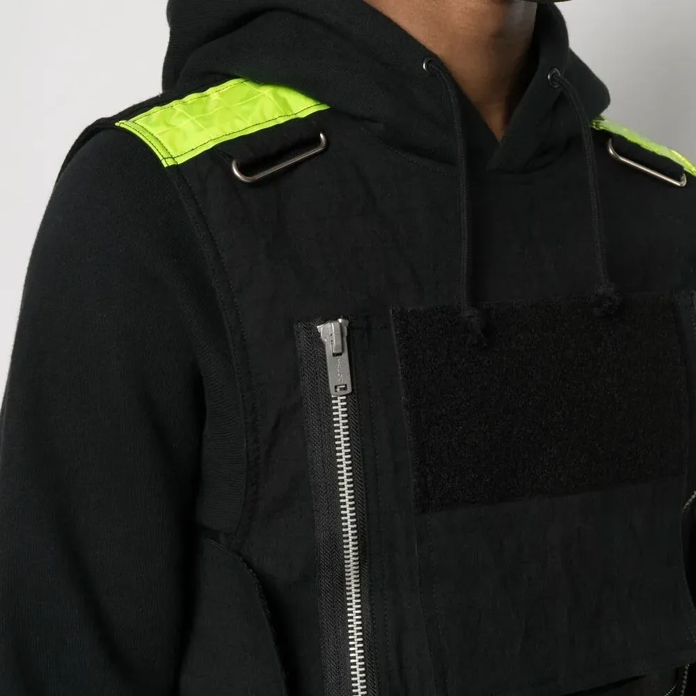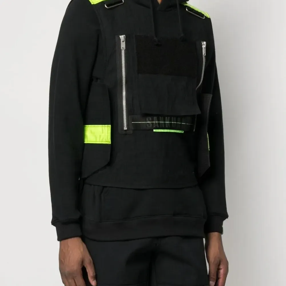 Нашивка с логотипом спереди, светоотражающие детали, многослойный дизайн, затягивающийся на шнурок капюшон, манжеты в рубчик, подол в рубчик, длинные рукава и карман-муфта. Цвет: черный. Это унисекс-модель. Обратите внимание, что для нее используется мужская размерная сетка.