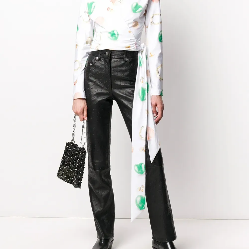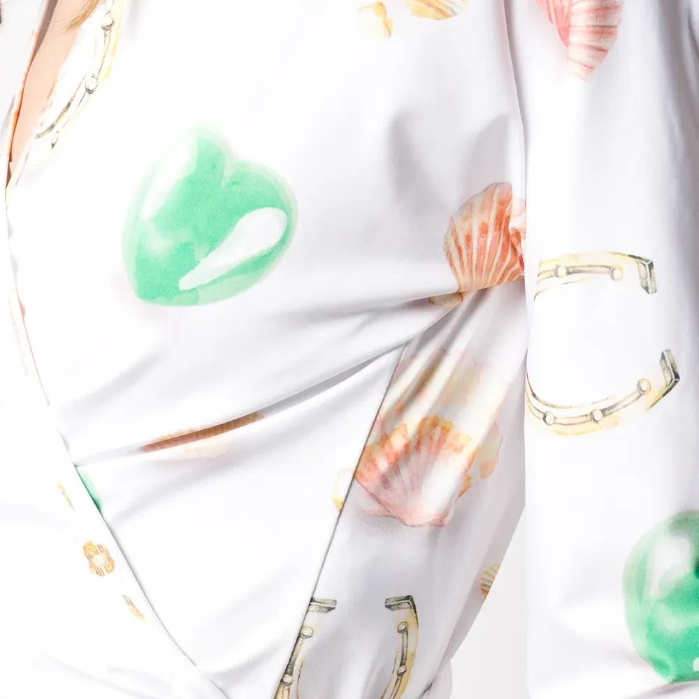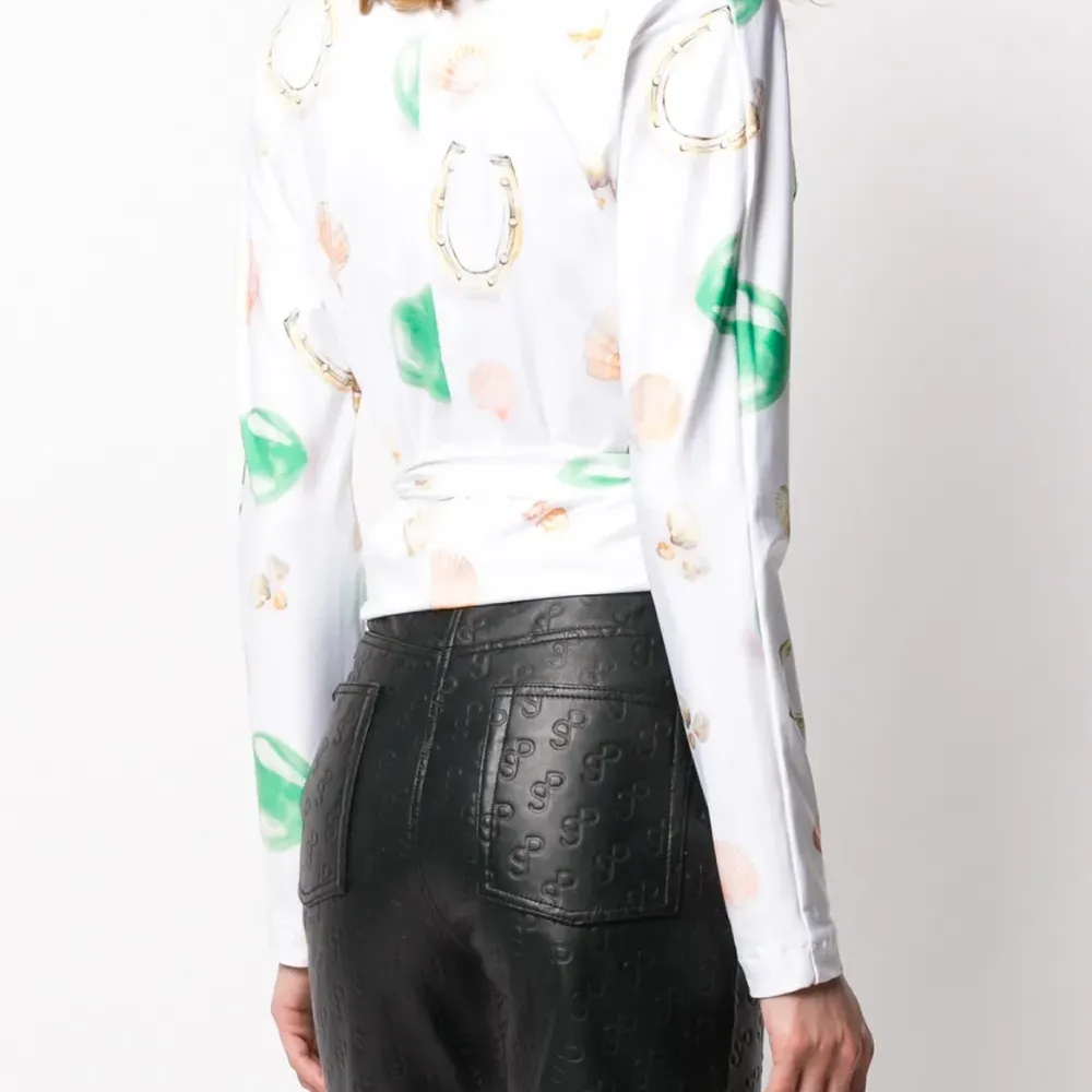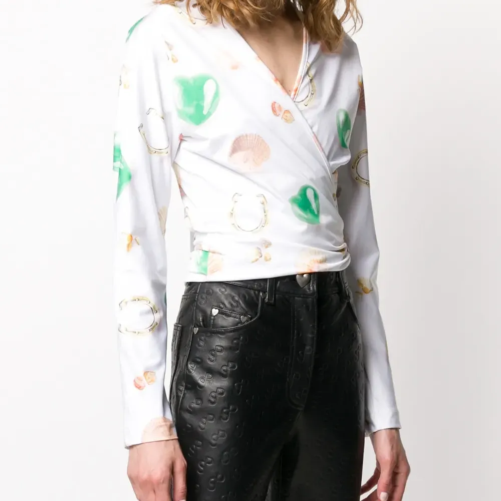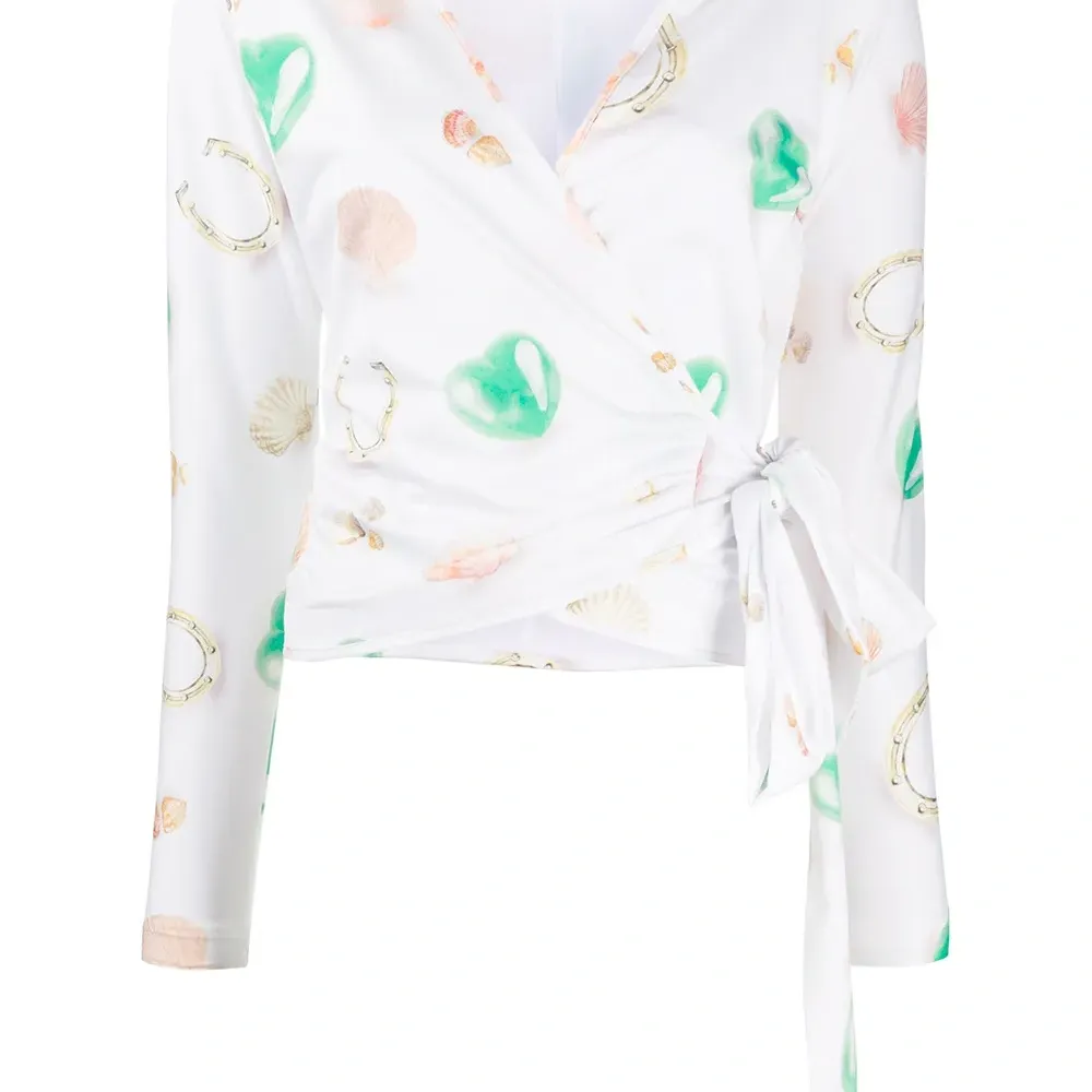 Топ с запахом и принтом от Saks Potts. Сплошной узор, перед с запахом, V-образная горловина, длинные рукава и застежка-завязка. Цвет: белый.