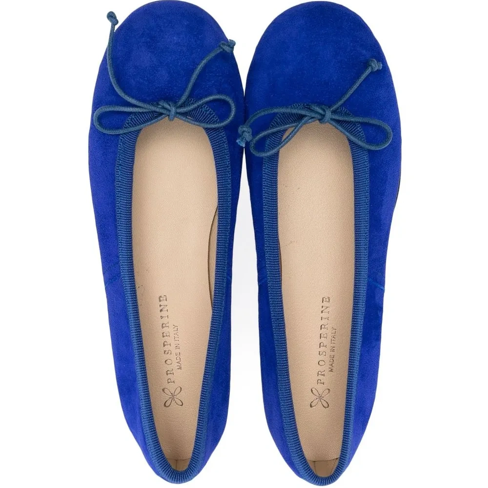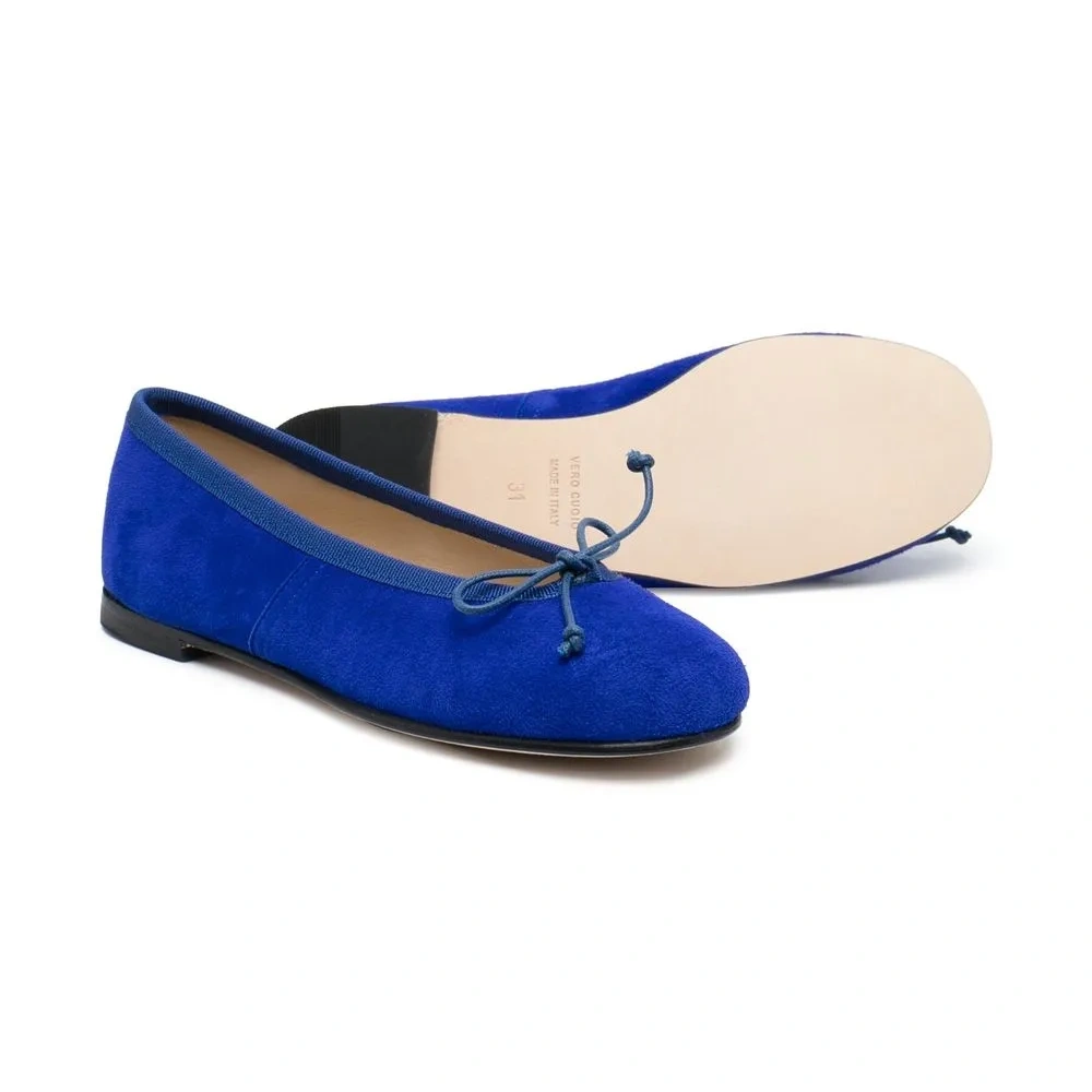 Синий, телячья кожа, бант, закругленный носок, плоская подошва и модель без застежки.