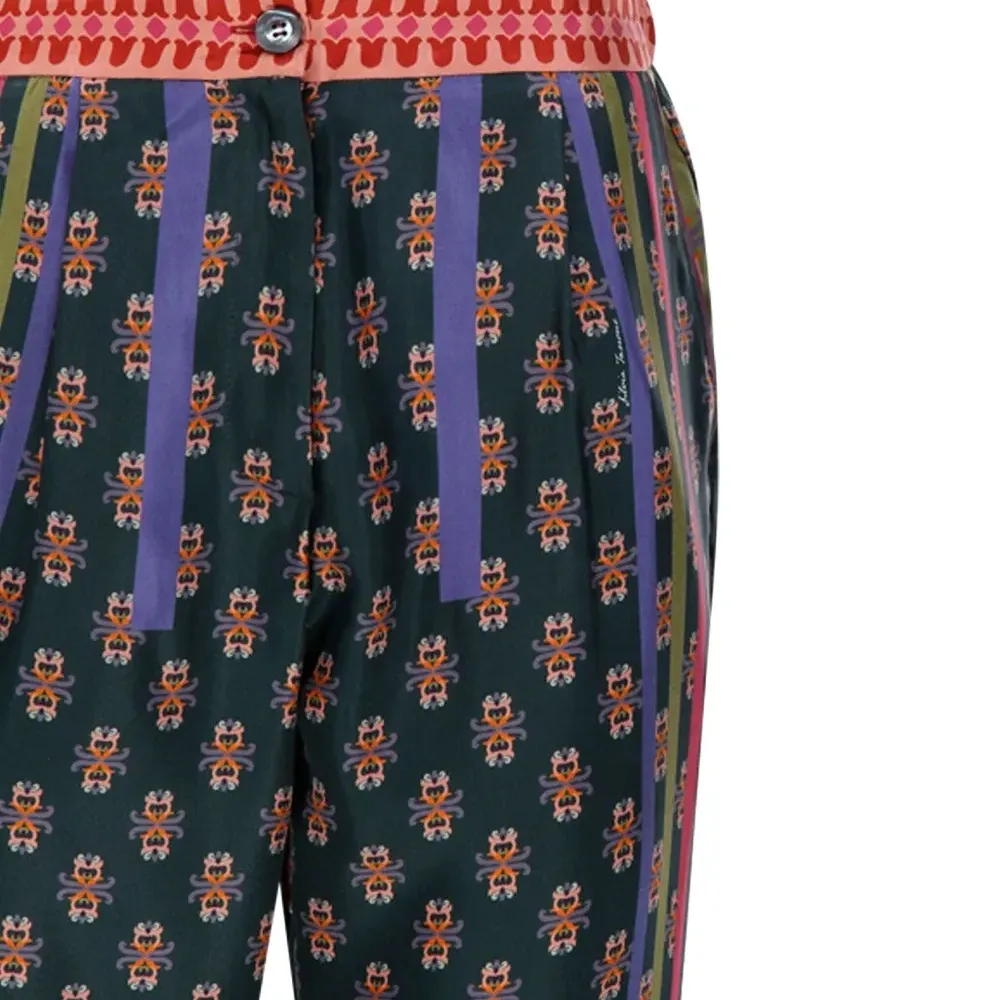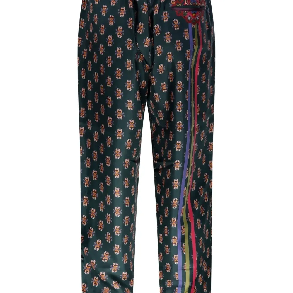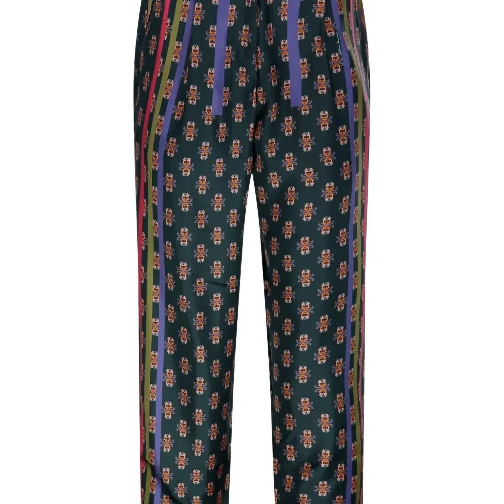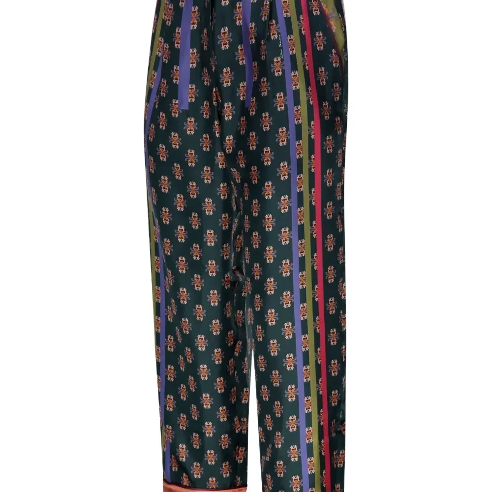 темно-зеленый цветочный узор вертикальные полосы застежка на пуговицы прямой крой брюк