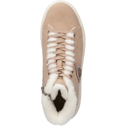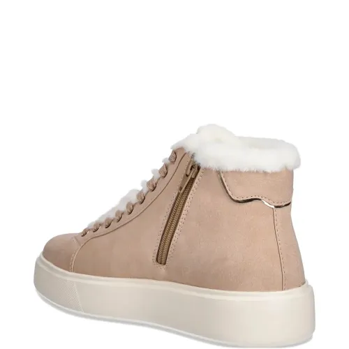 светло-коричневый цвет, боковая застежка-молния, нашивка с логотипом, шнуровка, отделка из искусственного меха, резиновая подошва