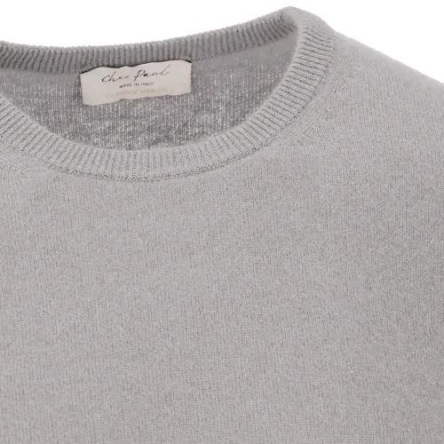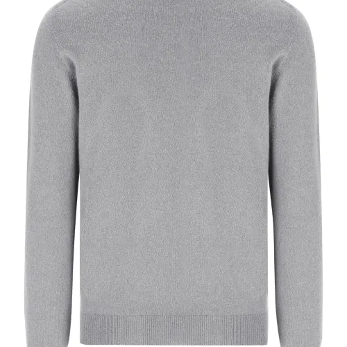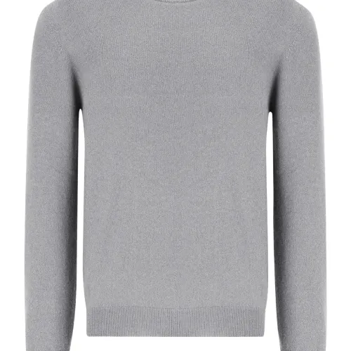 серый кашемировый джемпер с ребристым воротником и круглым вырезом