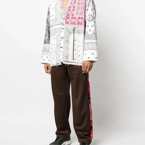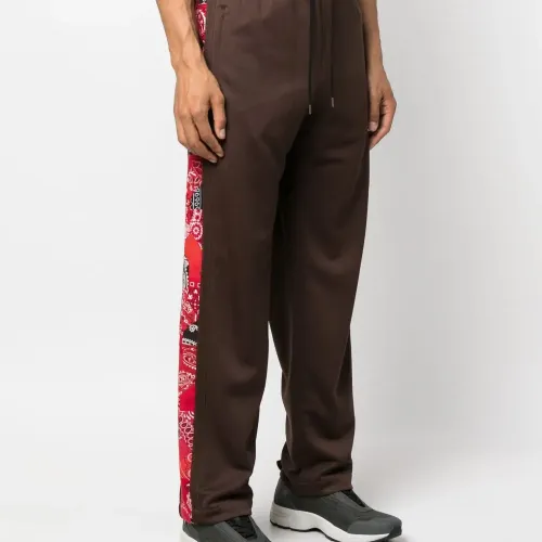 Красно-коричневый, узор пейсли, кулиска на талии, два вшитых кармана по бокам, два кармана с листочкой сзади и прямой крой.