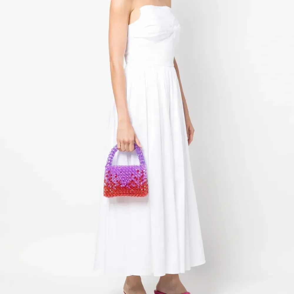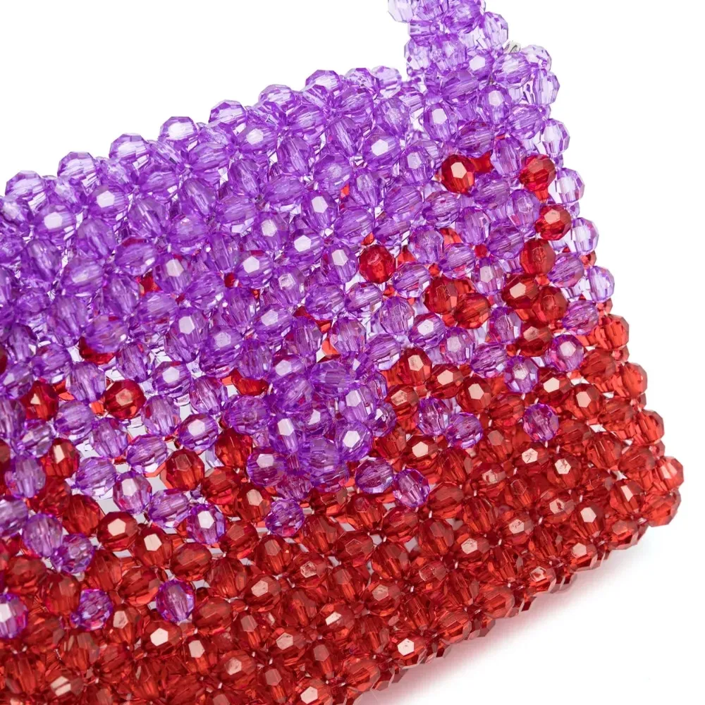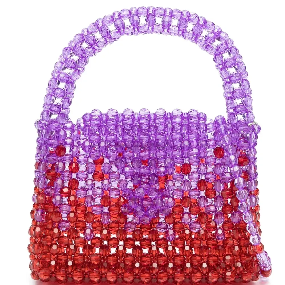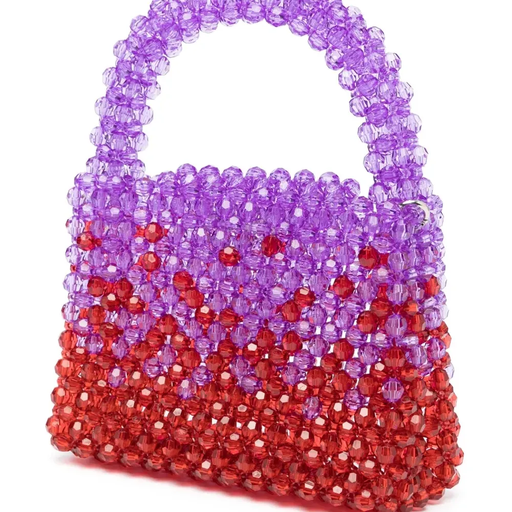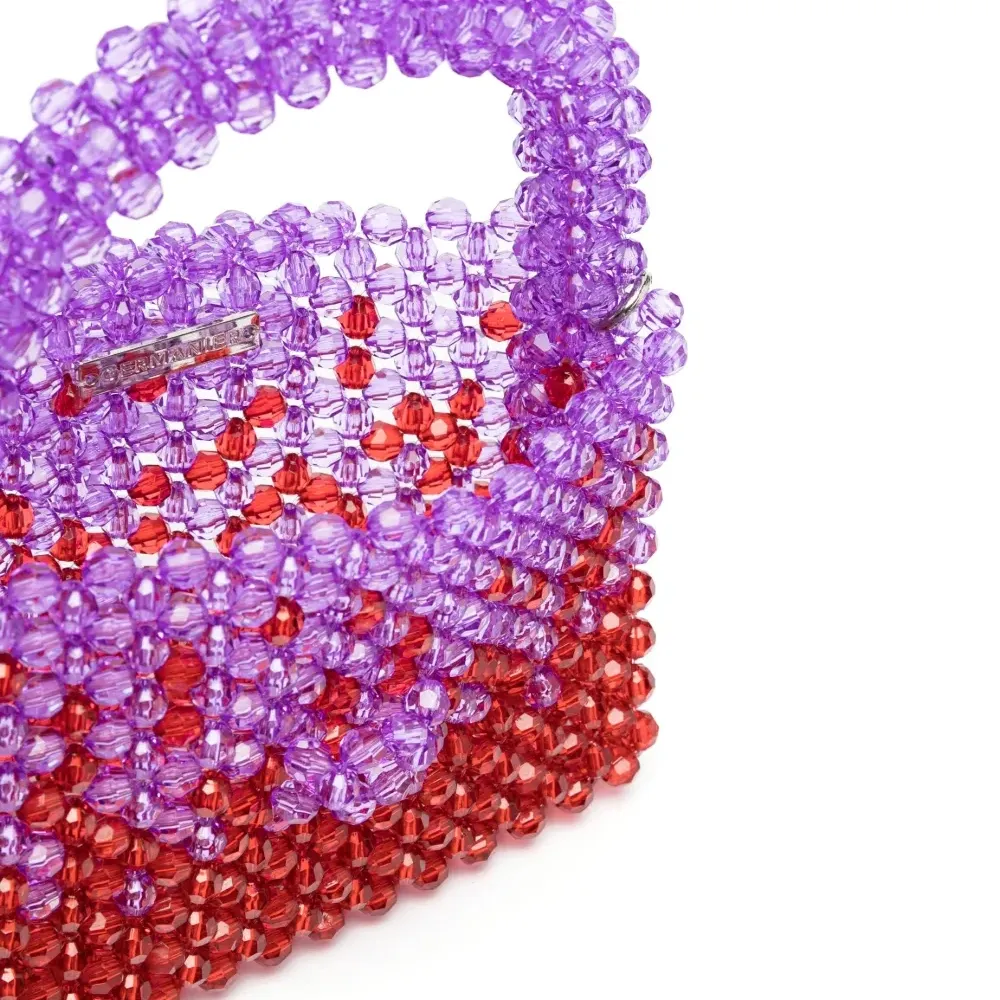 Сочетание двух оттенков, декор из бисера, закругленная верхняя ручка и ремень на плечо.
