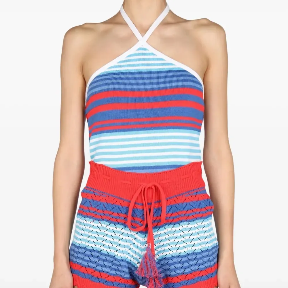 Полосатый топ с вырезом халтер
