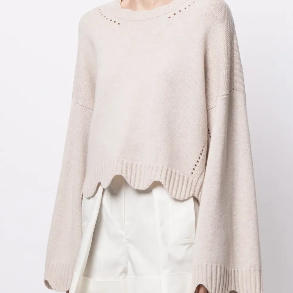 Джемпер с круглым вырезом и фестонами