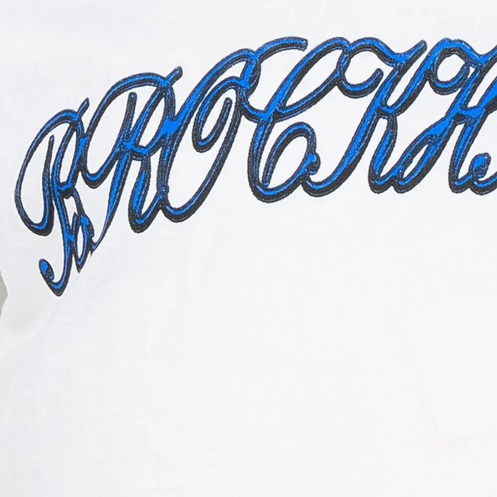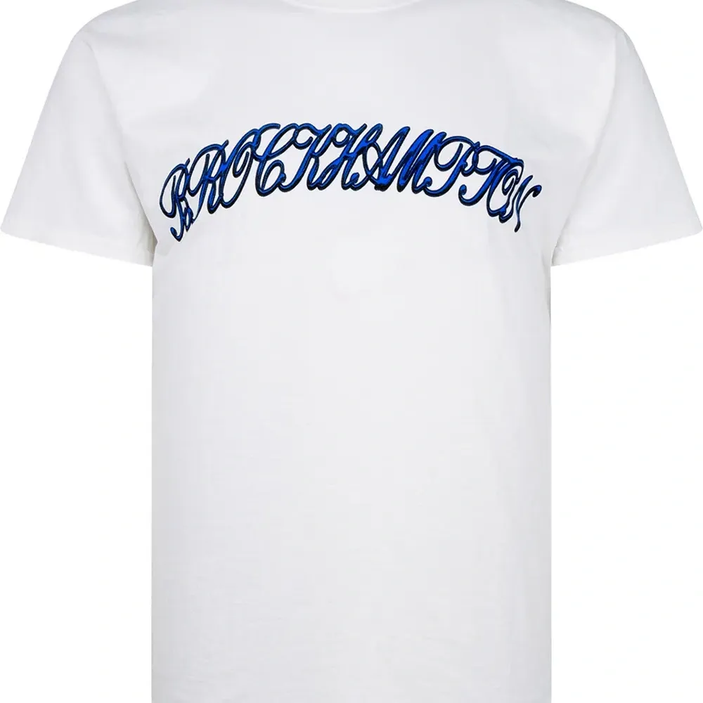 Принт с логотипом на груди, принт с надписью сзади, круглый вырез, короткие рукава и прямой подол. Цвет: белый.