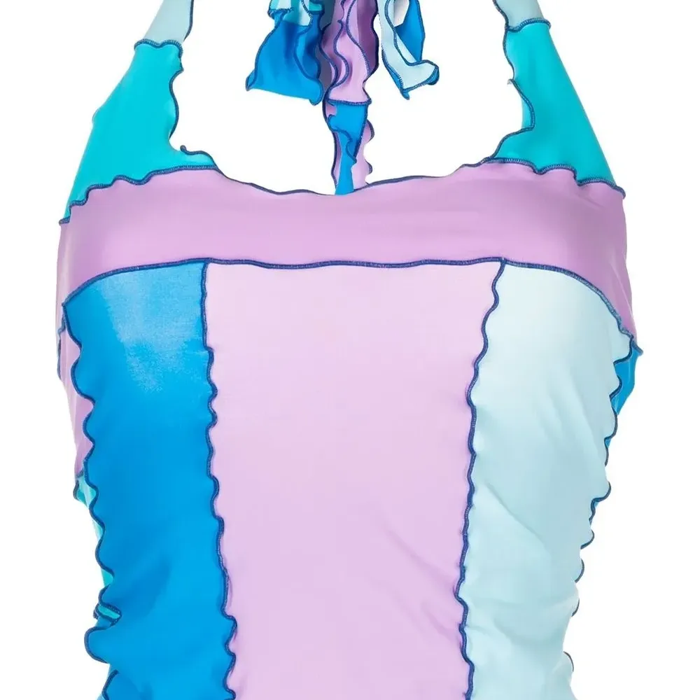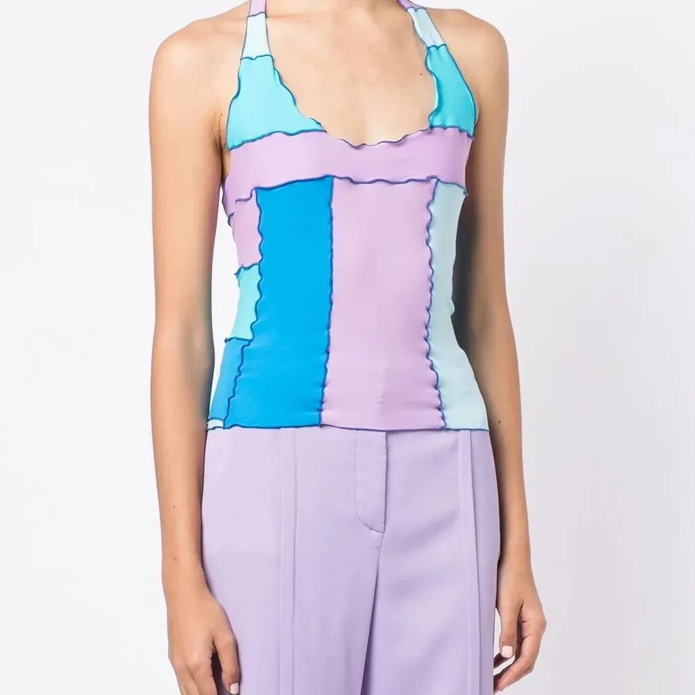 Топ в стиле колор-блок с вырезом халтер