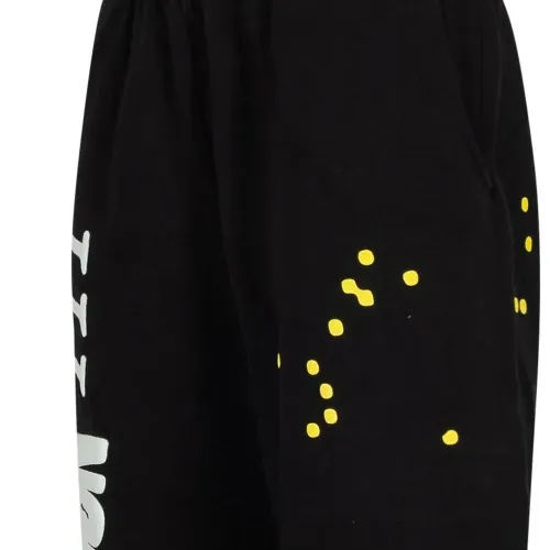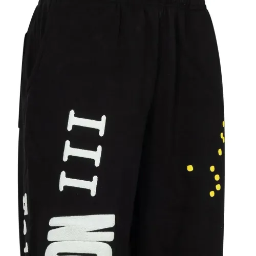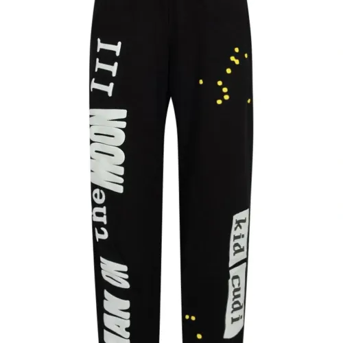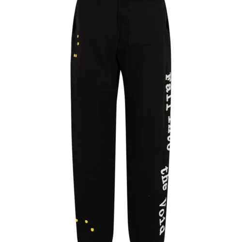 Черный, хлопок, принт с надписью сбоку, эластичный пояс, два кармана по бокам, накладной карман сзади и эластичные манжеты.