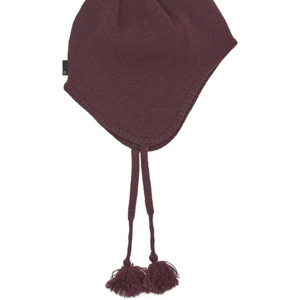 Вязаная шапка бордового цвета с кисточками