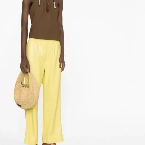 Желтый, искусственная кожа, эластичный пояс, накладной карман сзади и прямой крой. Этот товар как минимум на 50% состоит из переработанных или повторно использованных материалов.