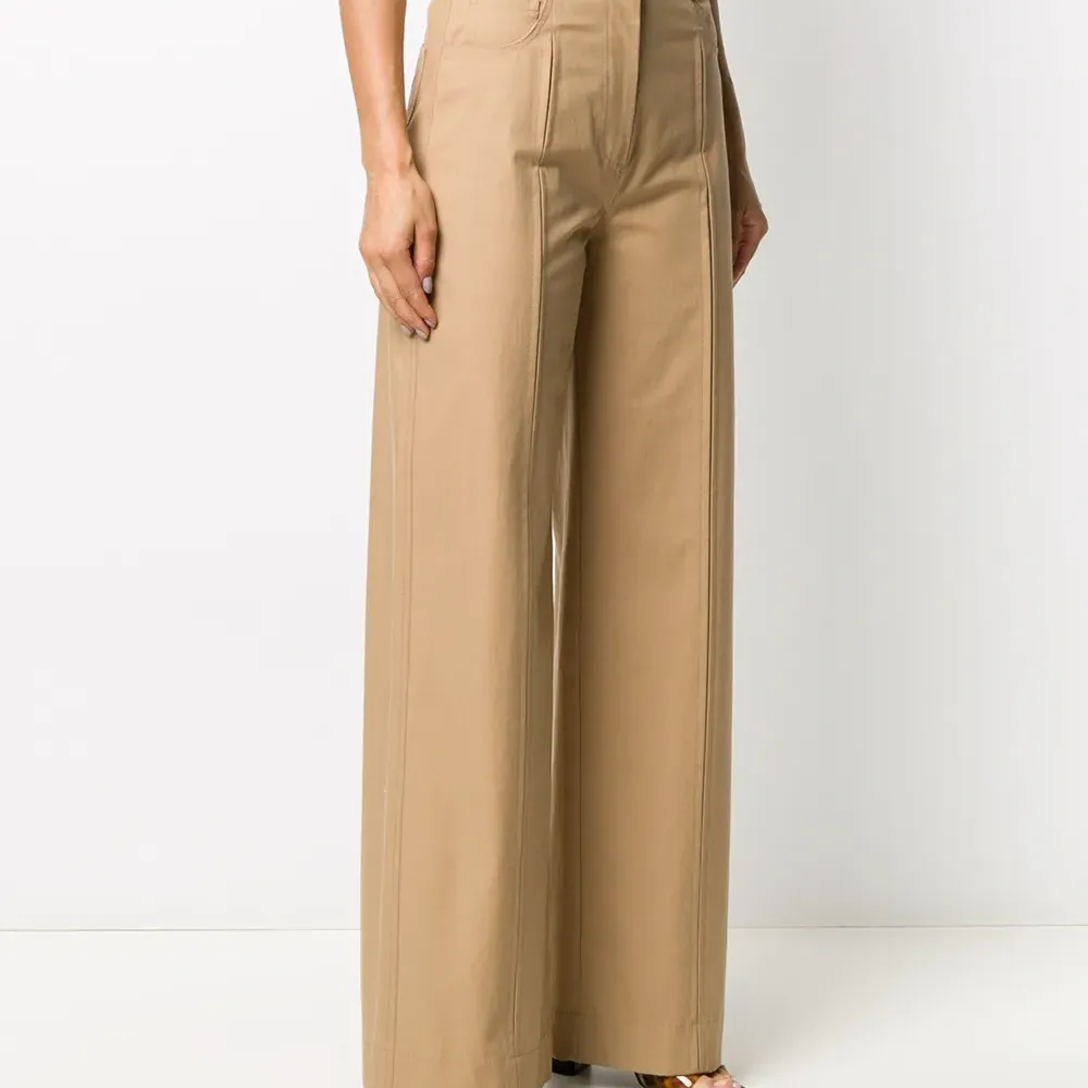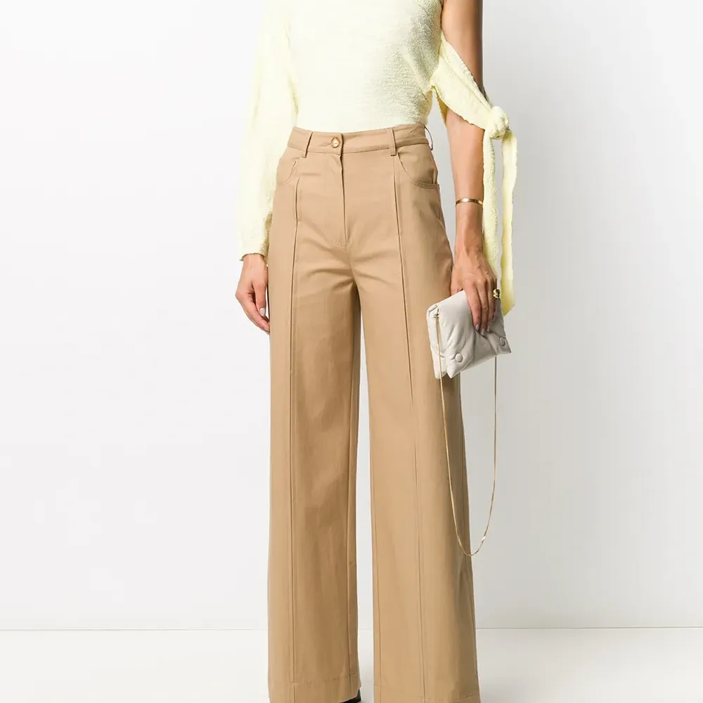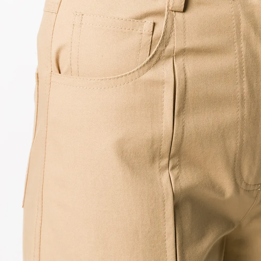 Петли для ремня, классическая пятикарманная модель, плиссировка, застежка на пуговицах спереди и свободный крой.
