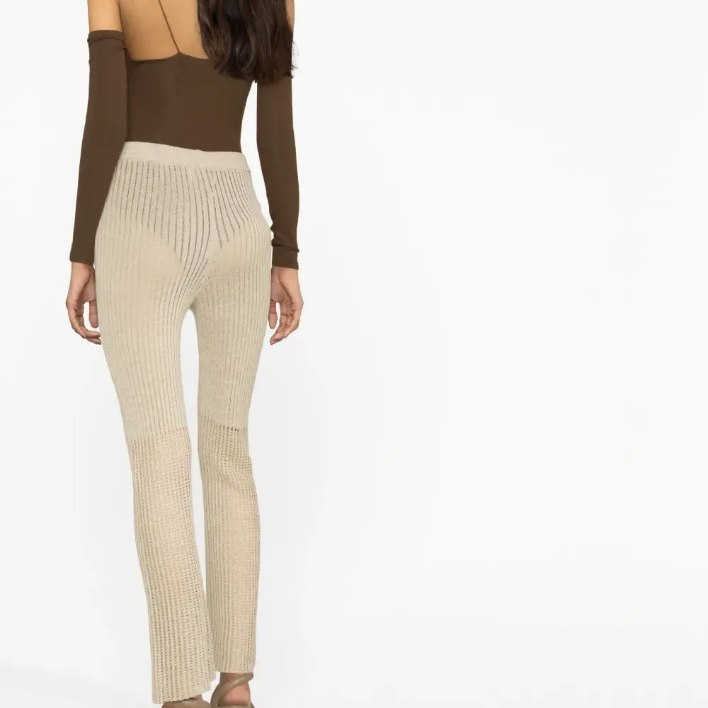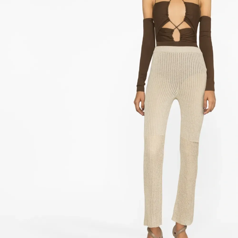 Кремово-белый, трикотаж в рубчик, завышенная талия, эластичный пояс, узкий крой и высота по щиколотку. Узнать больше о том, какие товары получают отметку «Ответственный выбор», можно здесь.