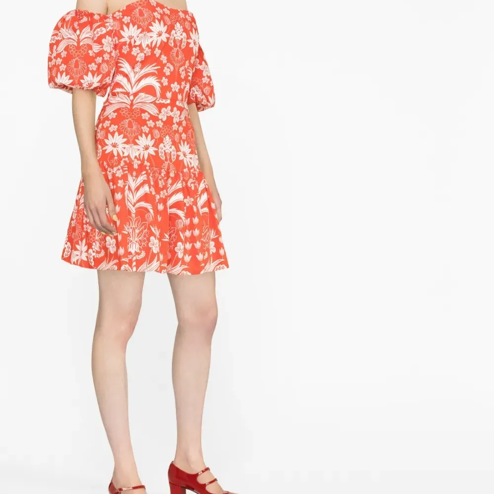Платье с открытыми плечами и цветочным принтом