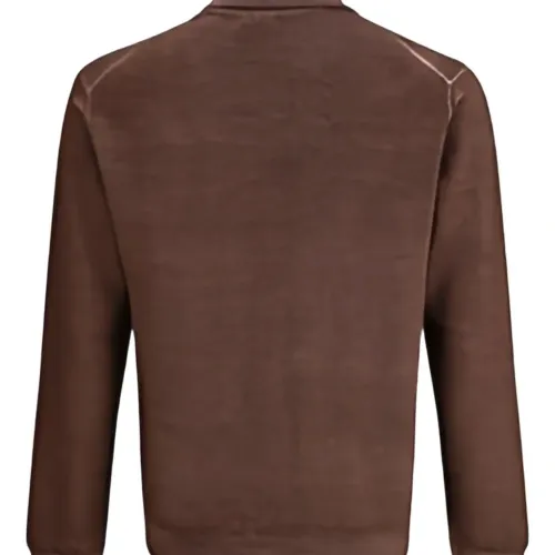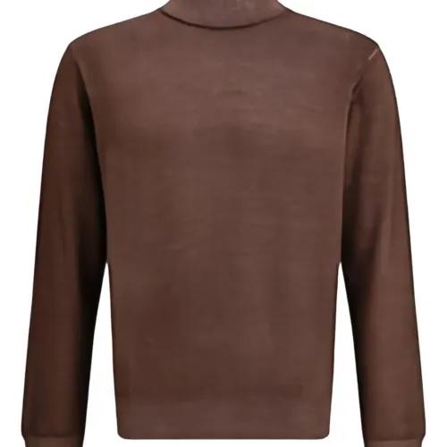 коричневый в рубчик с высоким воротником, манжетами в рубчик, гладкая вязка