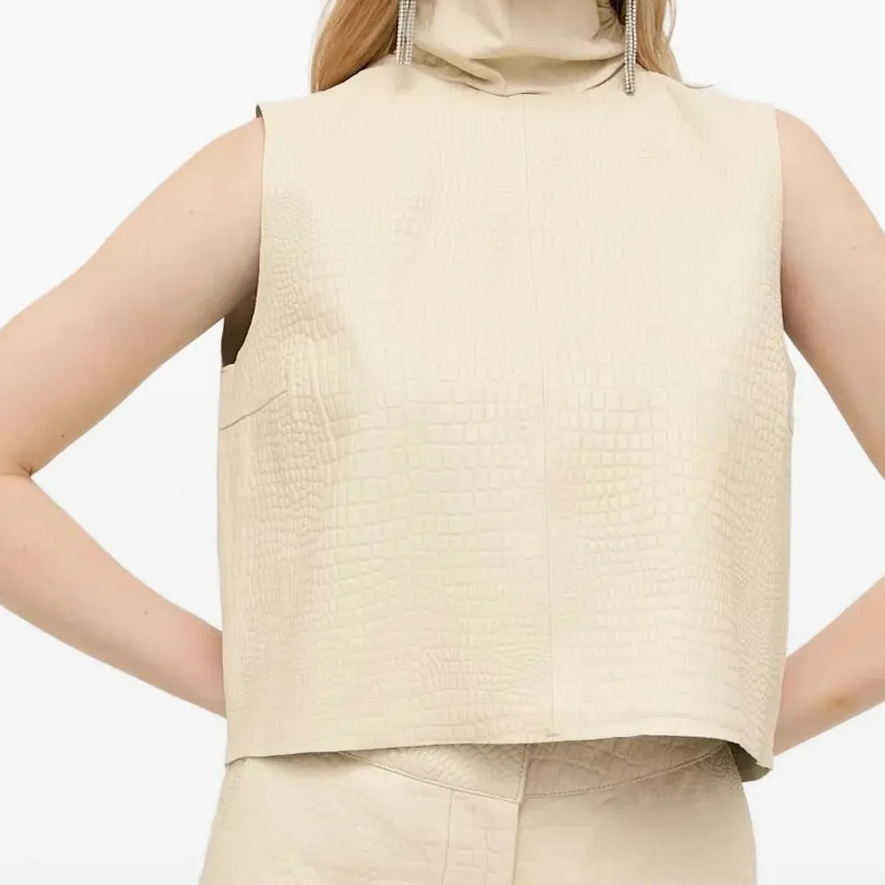 Кожаный жилет с высоким воротником