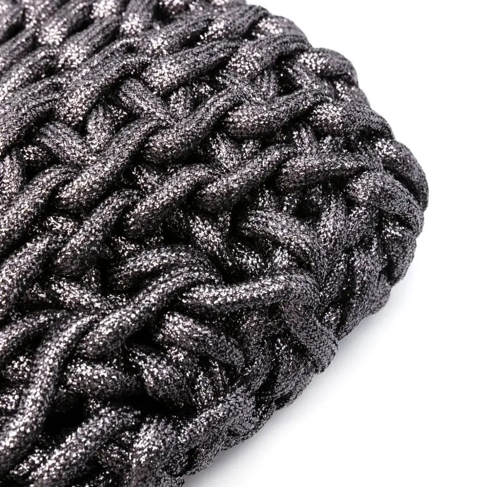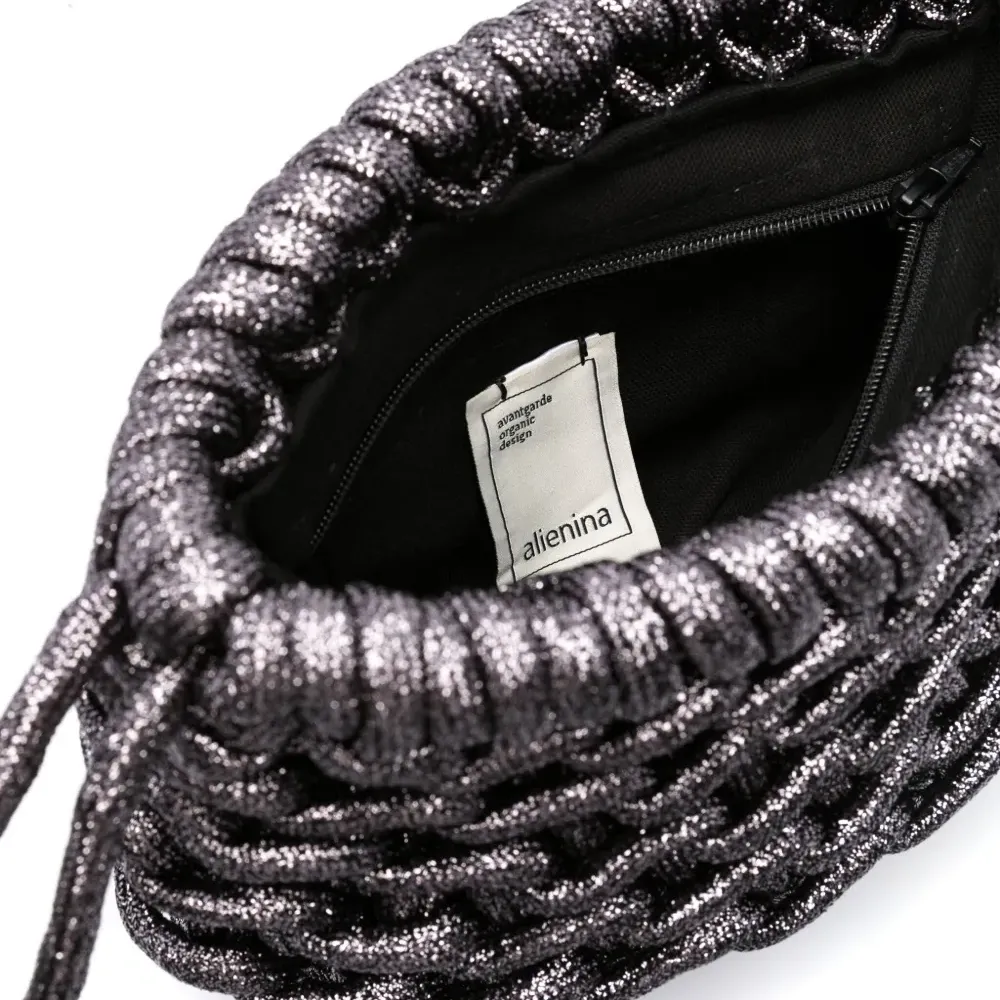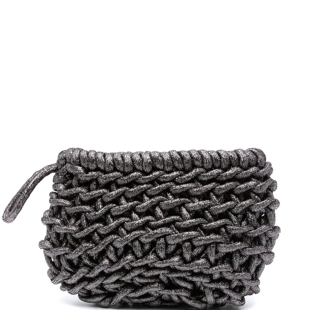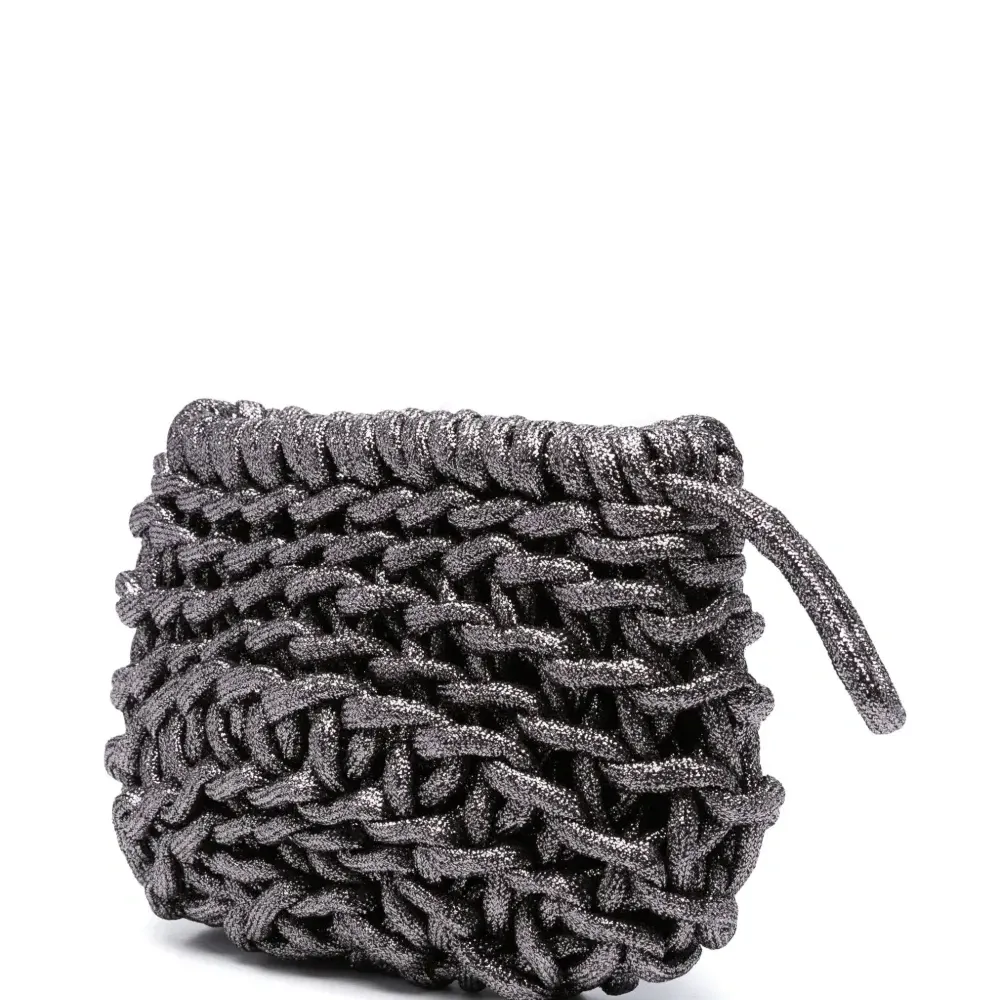 Серебристый, хлопок, вставки из люрекса, переплетенный дизайн, нашивка с логотипом внутри, потайная застежка на магните, внутренний карман на молнии и основное отделение. Узнать больше о том, какие товары получают отметку «Ответственный выбор», можно из материала «Как мы оцениваем экологичность и этичность».