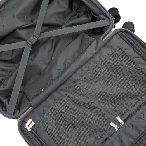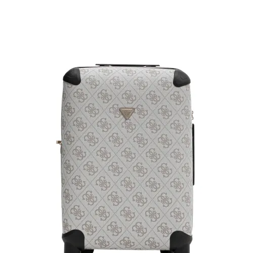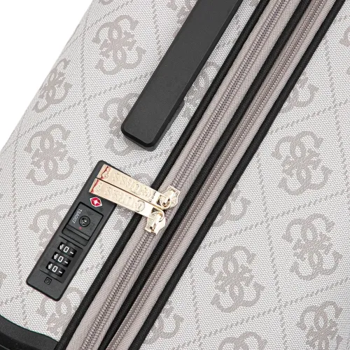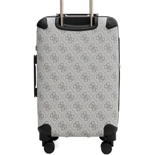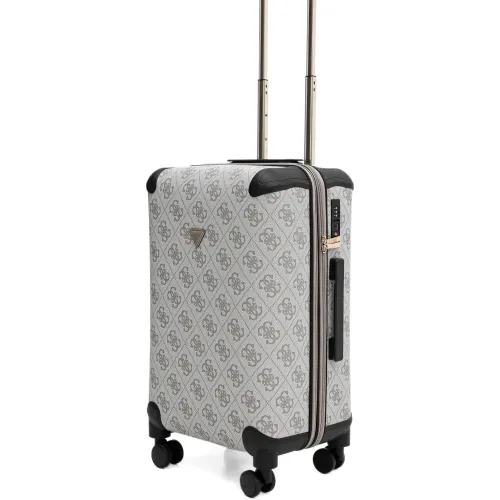 серый монограммный чемодан с верхней ручкой, четырьмя колесами и застежкой-молнией