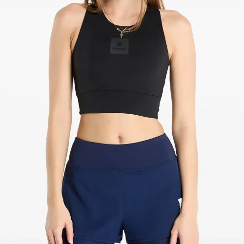 чёрный топ с логотипом, спортивная спинка, укороченный дизайн