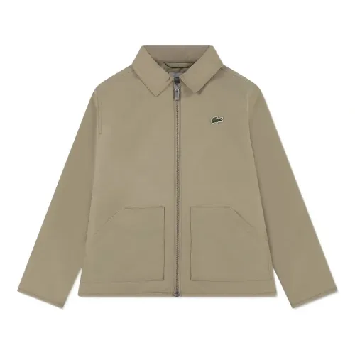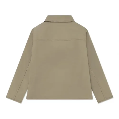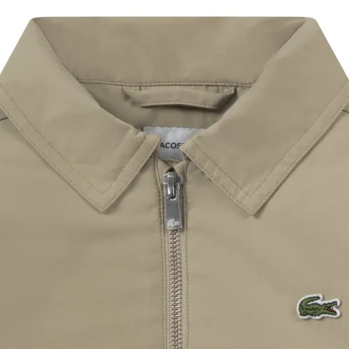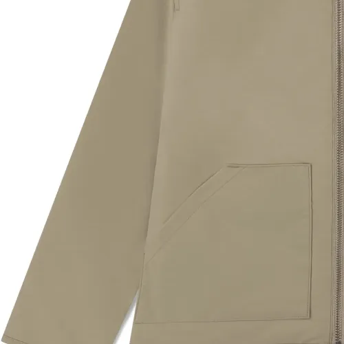 бежевый цвет, застежка на молнию, накладные карманы, воротник с острыми концами, нашивка с логотипом, декоративная строчка