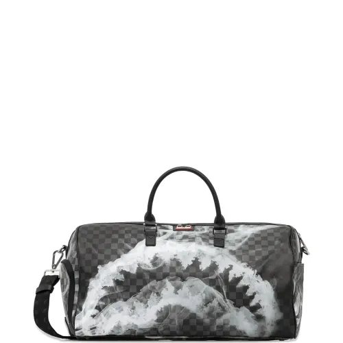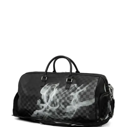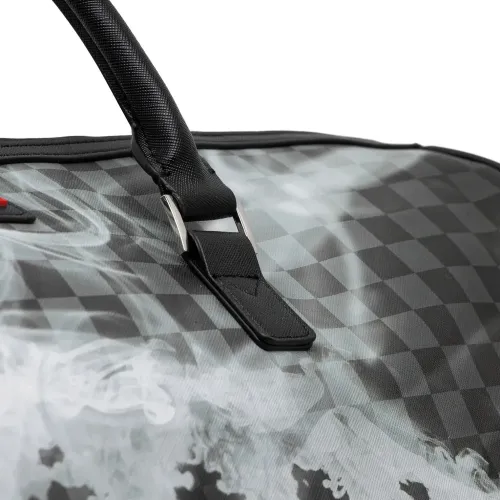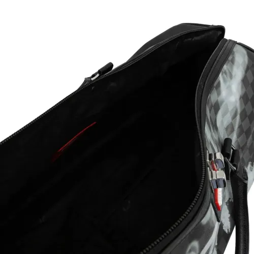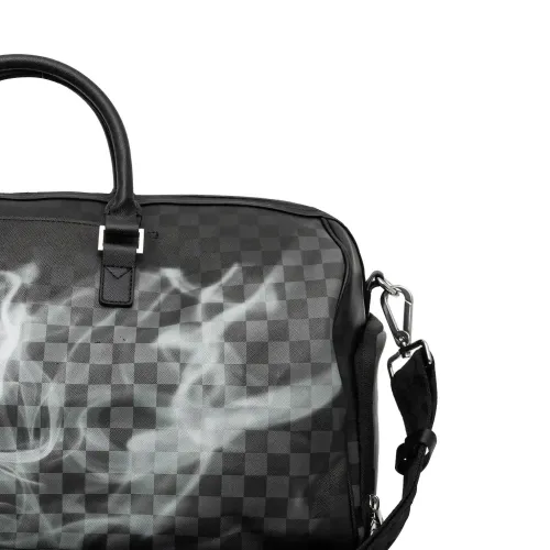 черная сумка с графическим принтом, верхней ручкой, съемным ремнем, узором в клетку и застежкой-молнией