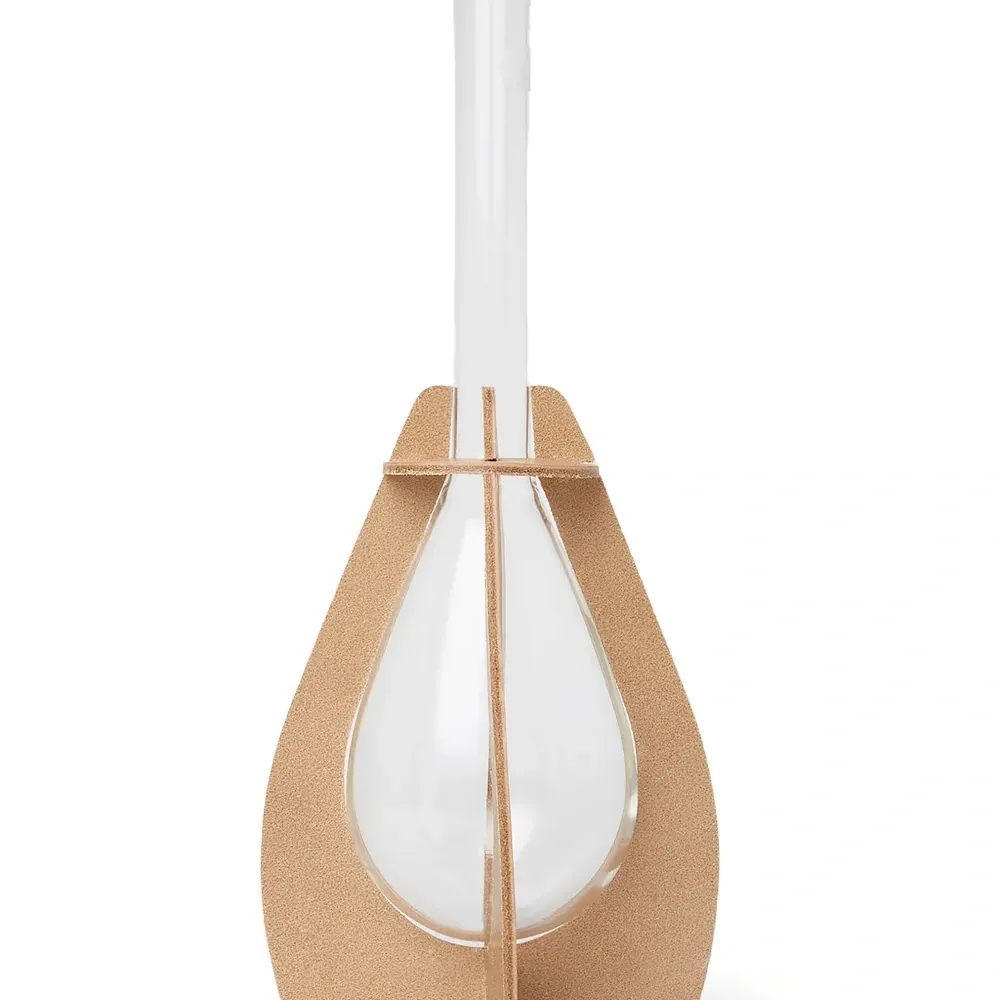 коричневая кожаная оправа, стекло, форма капли