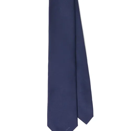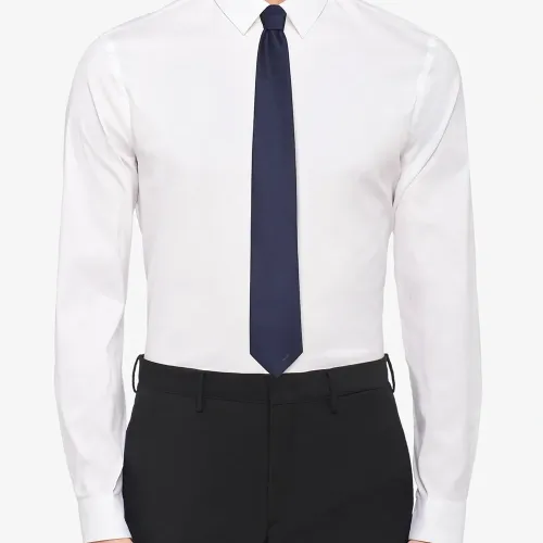 Галстук с вышитым логотипом от Prada. Заостренный конец и вышитый логотип спереди.