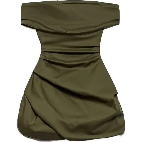 хаки, драпировка, дизайн с открытыми плечами, застежка-молния сзади