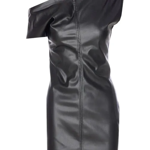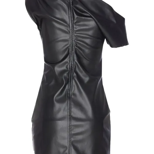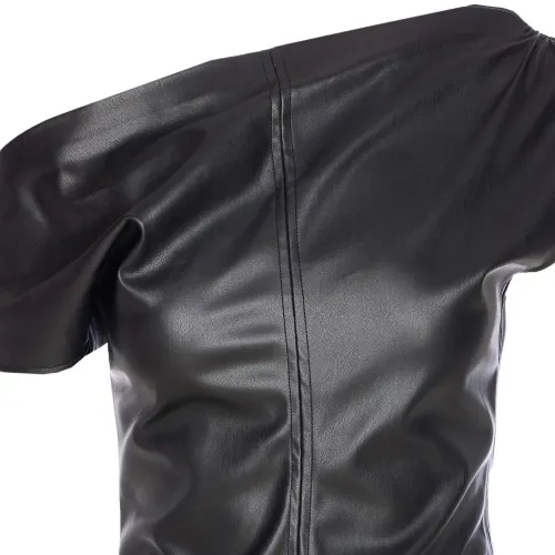 черный эффект кожи асимметричный вырез без рукавов застежка-молния сзади длина до бедра