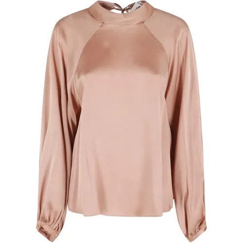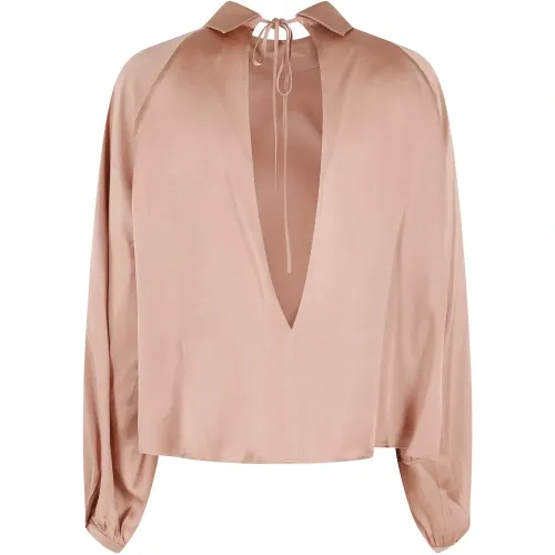 Розовая блузка с завязками, длинными рукавами, открытой спиной и присборенными манжетами.