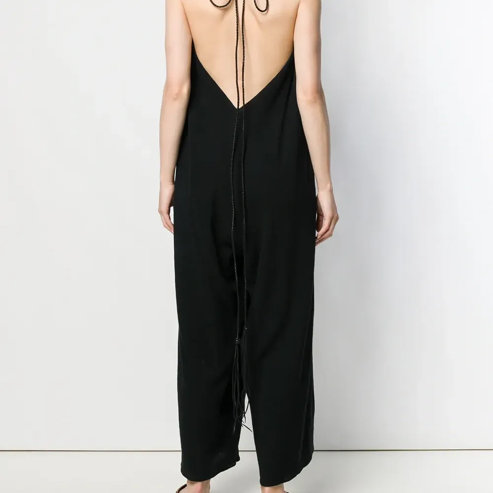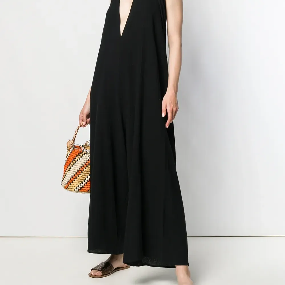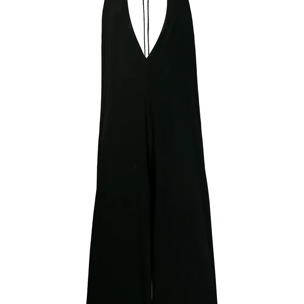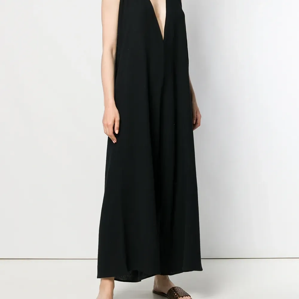 Комбинезон с глубоким V-образным вырезом от Caravana. Модель без рукавов, глубокий V-образный вырез, свободный крой и удлиненная модель. Цвет: черный. POSITIVELY CONSCIOUS: Мы объединились с агентством Good On You, которое составляет рейтинг ответственных брендов. Этот бренд получил отметку «Ответственный выбор», потому что отвечает ключевым стандартам агентства.