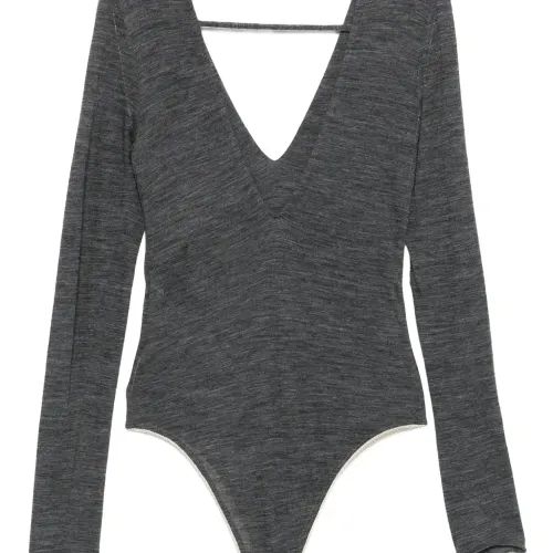 боди с V-образным вырезом и длинными рукавами