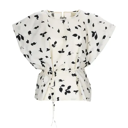 Блуза с принтом в виде листьев и галстучным воротником