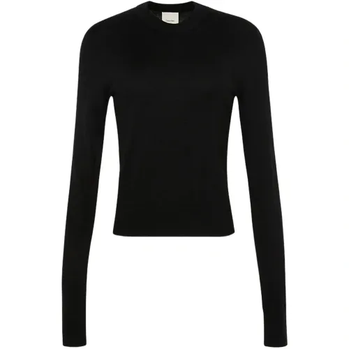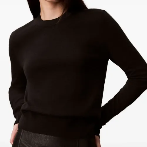 черный трикотаж с круглым вырезом и длинными рукавами