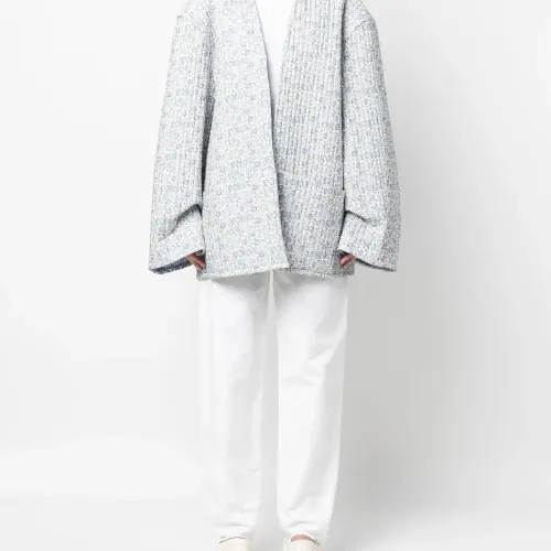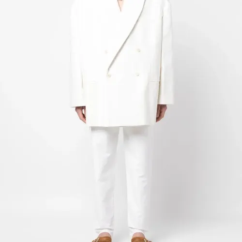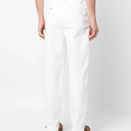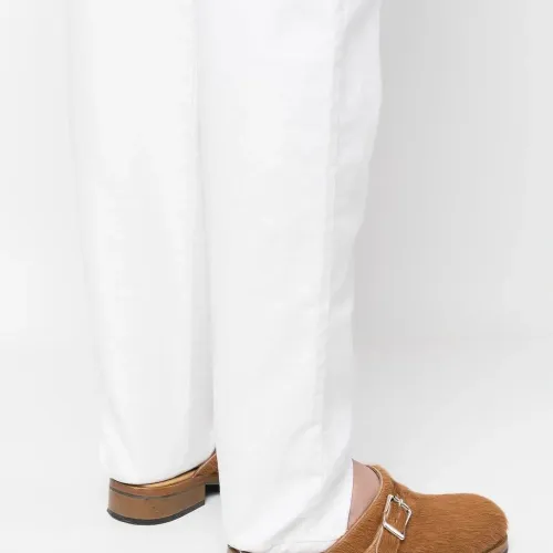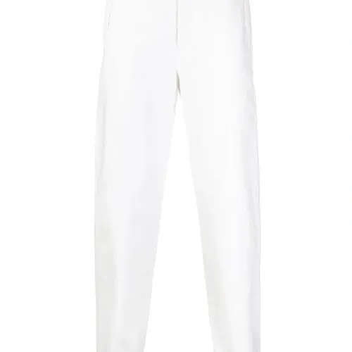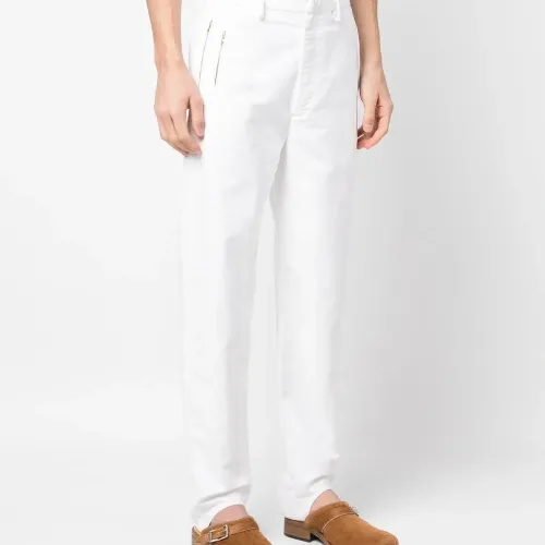 Белый, хлопок, узкий крой, потайная застежка спереди, передние карманы на молнии и два кармана на молнии сзади. Это унисекс-модель. Обратите внимание, что для нее используется мужская размерная сетка.