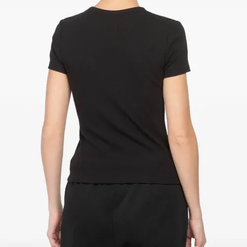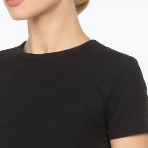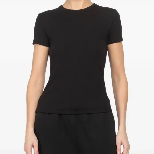 черный трикотажный топ с короткими рукавами и круглым вырезом в рубчик